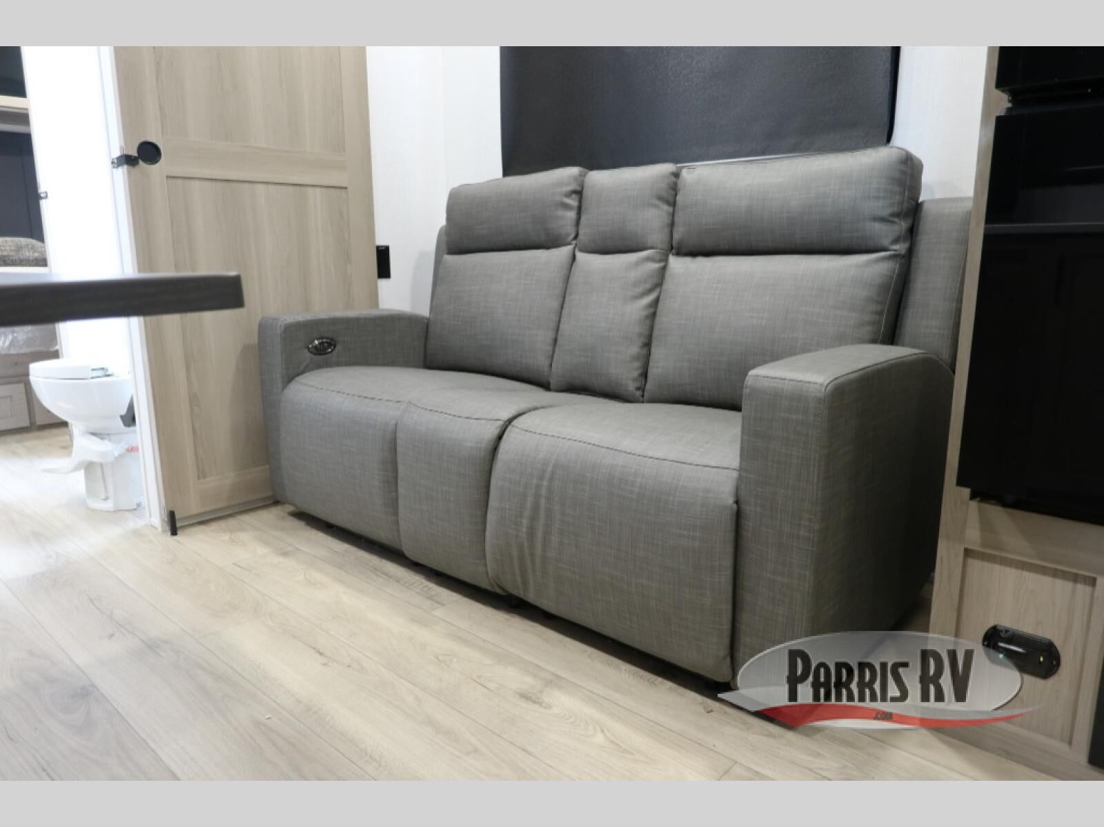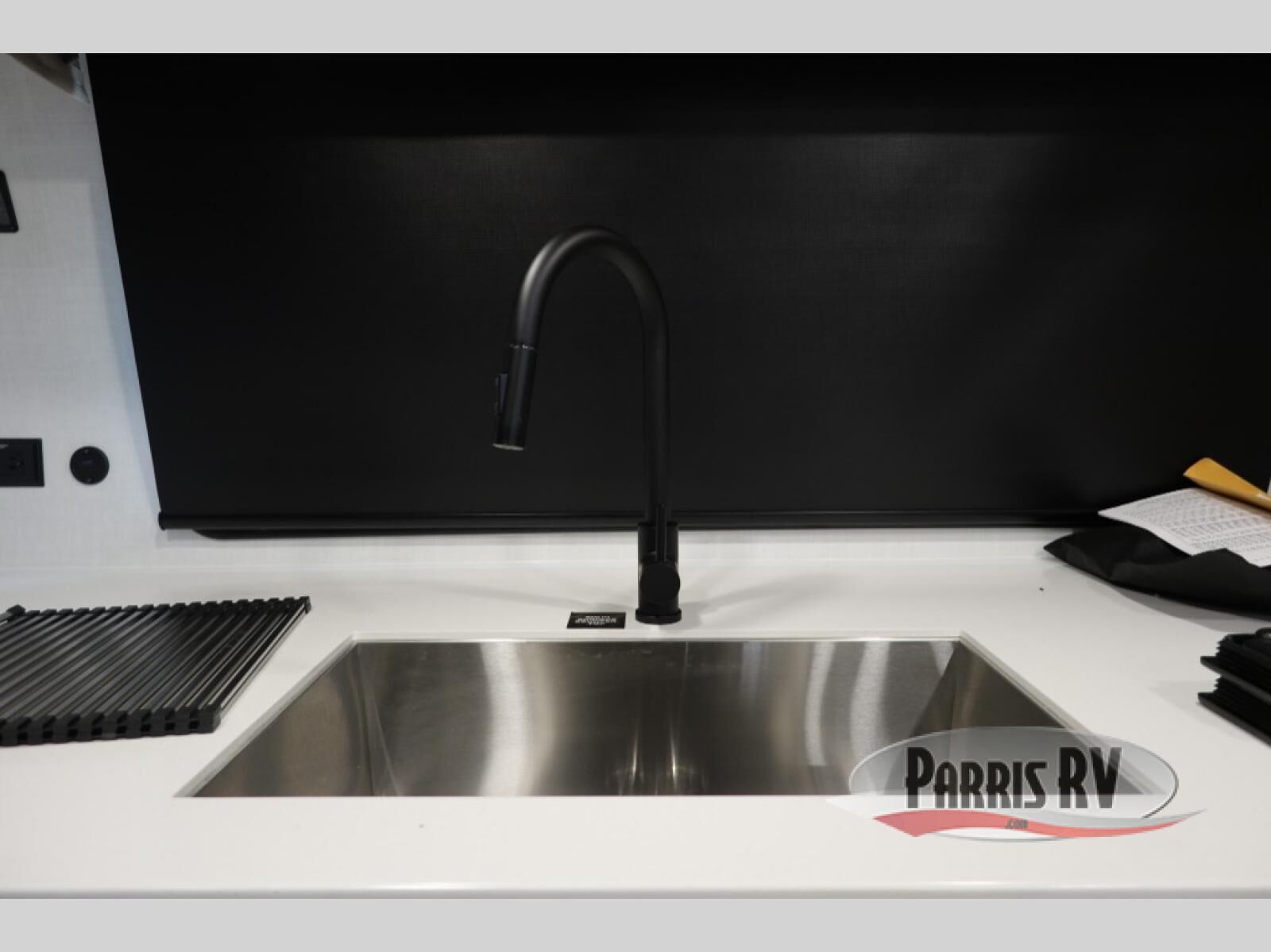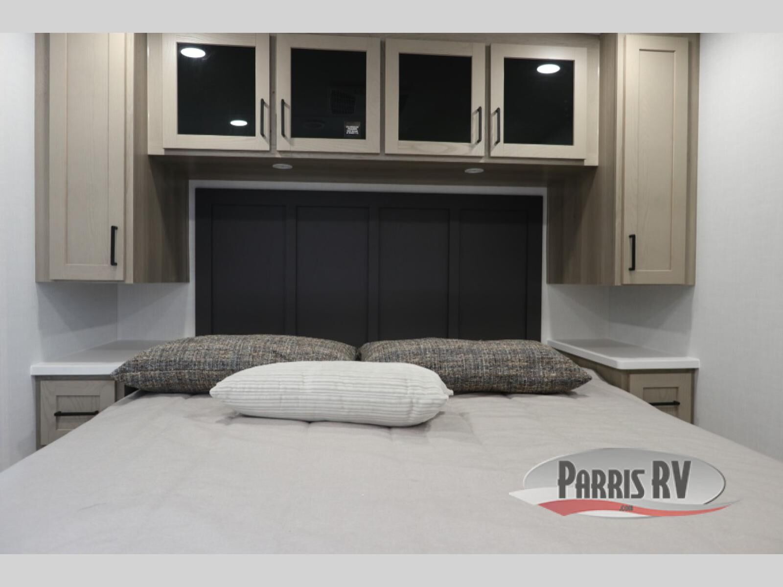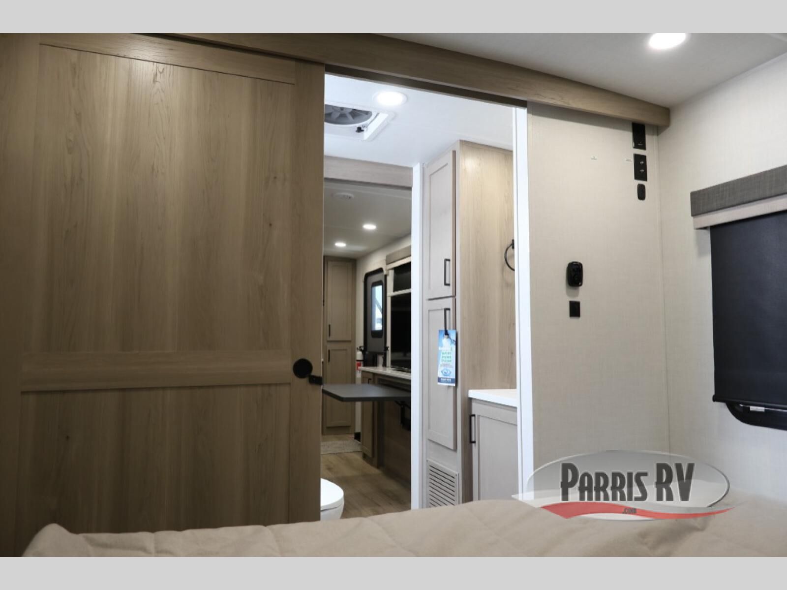 This Rockwood Ultra Lite 301FKT is fit for a cook! As soon as you step inside, you're greeted by the spacious front kitchen. Designed for convenience and style, it has long solid surface countertops that provide ample space for meal prep and organizing utensils. The overhead cabinets offer plenty of room to store dishes and ingredients for all your favorite recipes. After cooking, you can unwind on the 67" theater seat facing a TV with a lift, perfect for movie nights or catching up on your favorite shows. For meals, enjoy dining at the flip-up table with folding chairs, ideal for sharing breakfast, lunch, or dinner with your partner. And when it's time to relax, a full bathroom leads to the rear bedroom, where a king-sized bed awaits to give you a restful night's sleep.