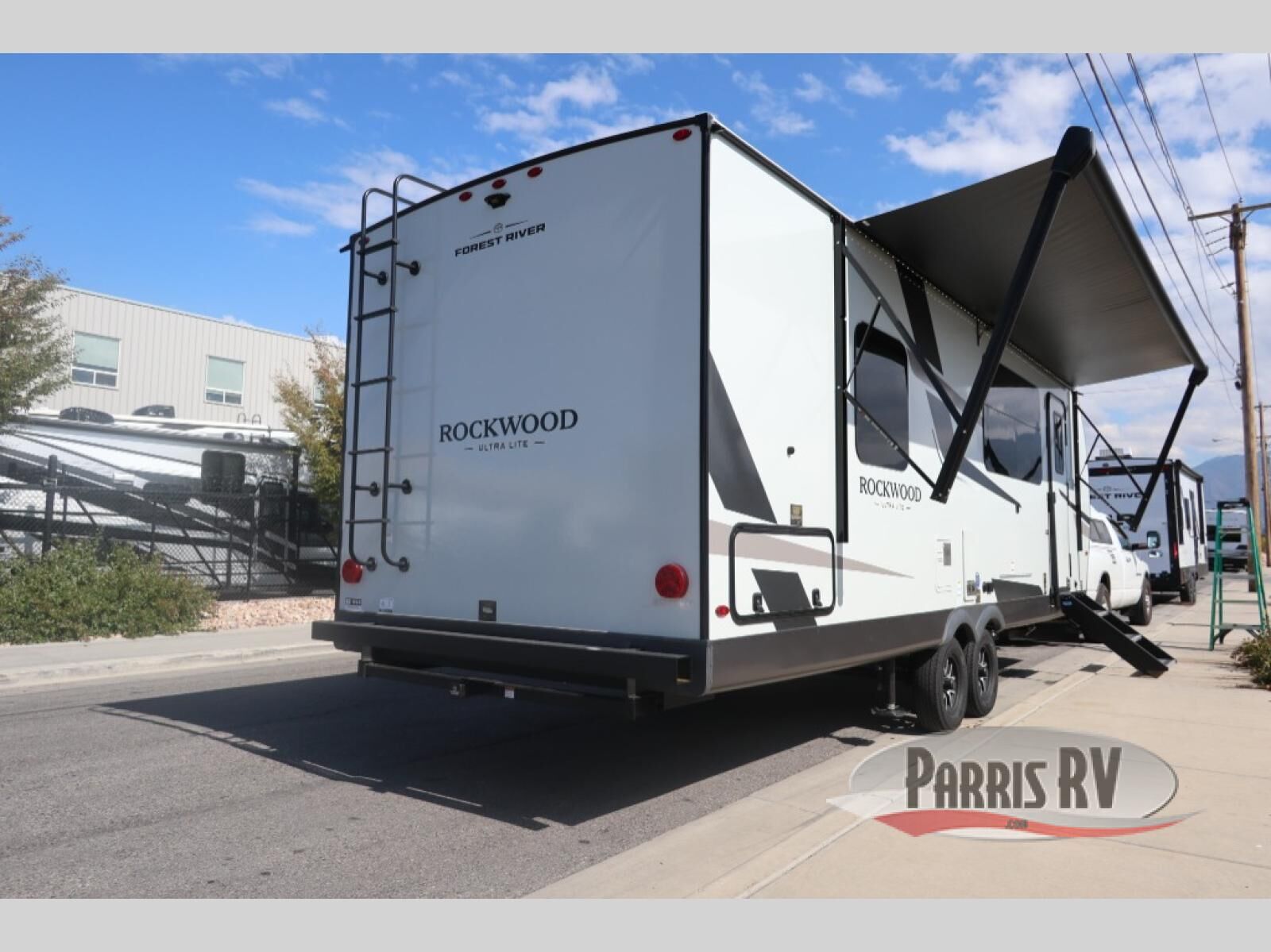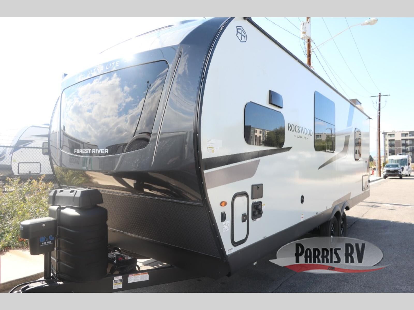 Each Rockwood Ultra Lite travel trailer by Forest River includes superior construction with a high gloss fiberglass cap, aluminum cage construction, and a power awning with LED lighting for a cozy and functional outdoor space. The torsion axle, power tongue jack will make towing smooth and hassle-free, along with the nitrogen filled, Goodyear Endurance tires and the tire pressure monitor system. Interior comforts include kitchen sink with high rise faucet, hidden hinge cabinet doors, and roller shades to name a few. Choose a Rockwood Ultra Lite travel trailer today!