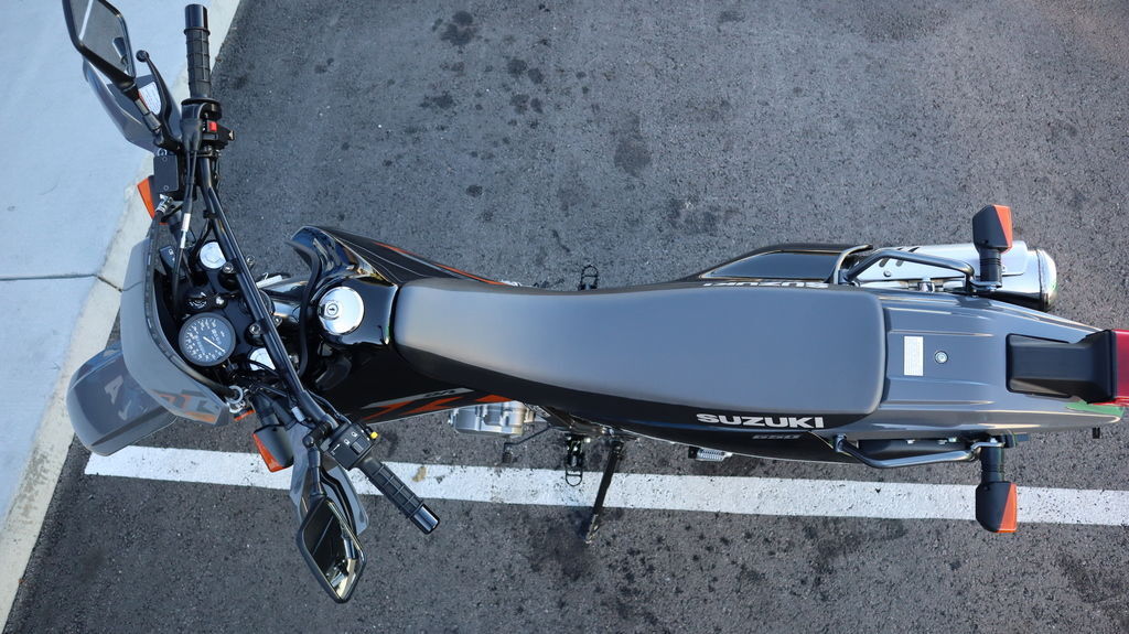 Available in Solid Black/Gray or Special White with bold graphics, the DR650S combines rugged looks with everyday comfort. The long, cushioned seat, aluminum footpegs, and passenger grab handles make it perfect for solo or two-up riding.