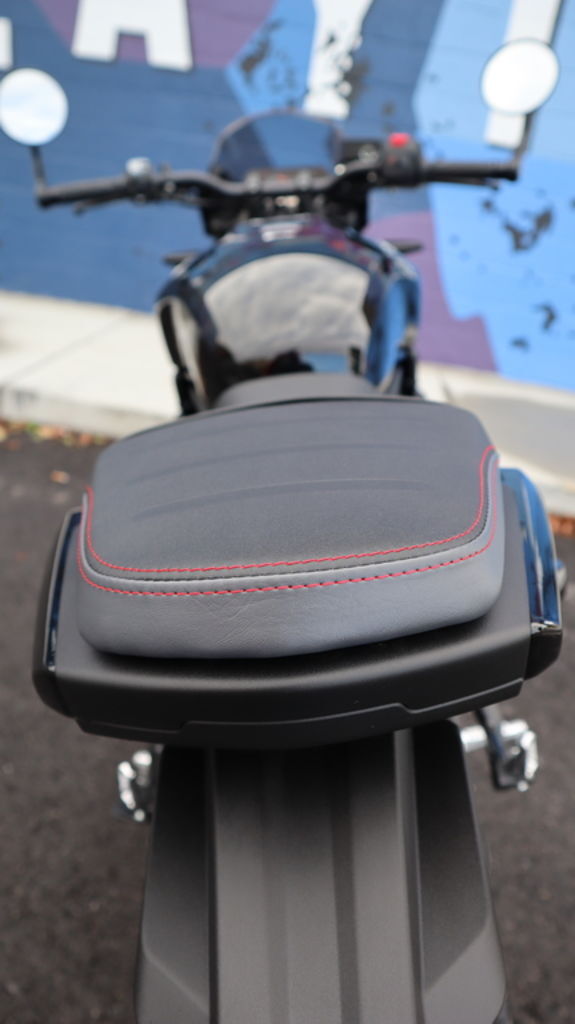 A uniquely styled headlight cowl and under cowling channel the look of legendary bikes like the GS1000S AMA Superbike. Bar-end mirrors, a sculpted seat with classic stitching, and period-inspired lines create a silhouette that stands apart.