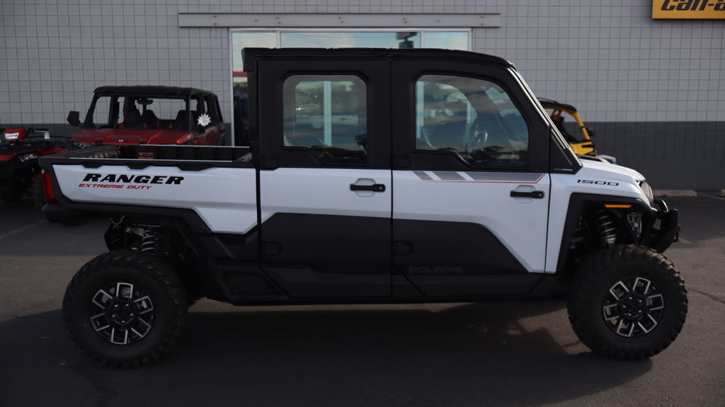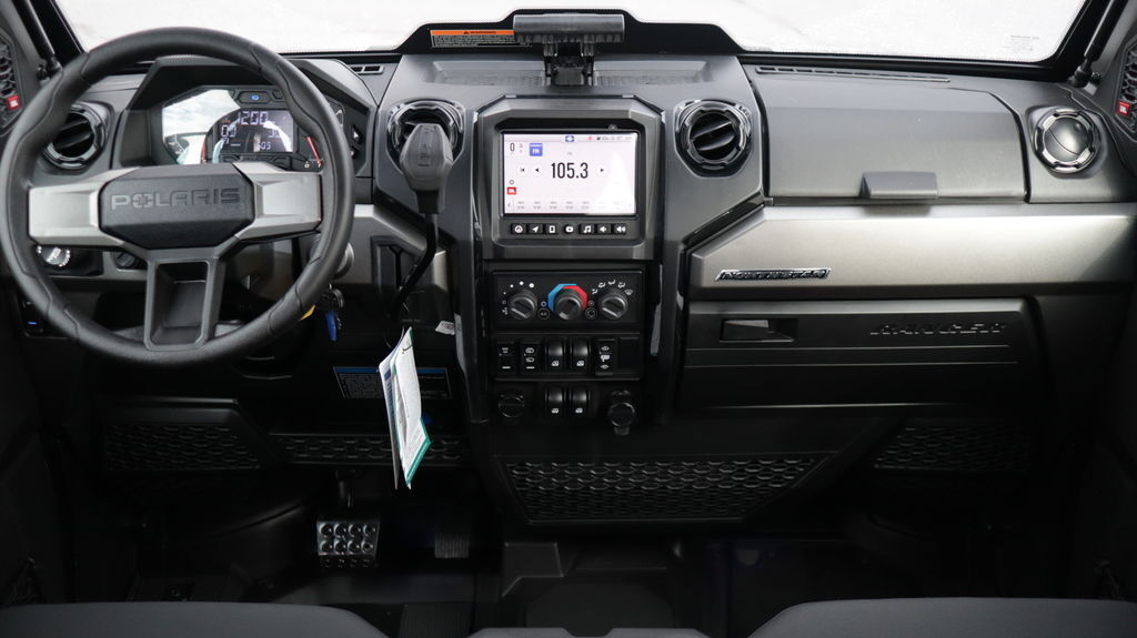2025 Polaris® Ranger Crew XD 1500 NorthStar Edition Ultimate OUTWORK THEM ALL IN ANY WEATHER RANGER XD 1500 is the strongest, most capable, most comfortable RANGER. NorthStar offers all-season comfort thanks to a fully enclosed cab, HVAC, and elevated in-cab amenities. Features may include: Unlock Exclusive NorthStar Features Elevate your ride for work or play with NorthStar comfort and convenience. Climate control, connected tech, premium audio and more deliver an exclusive off-road experience. Complete Climate Control The upgraded heating and air conditioning (HVAC) system offers 5 different air flow settings and a recirculation setting to draw air from inside the cab instead of outside for faster, more efficient heating and cooling. RIDE COMMAND Elevate your off-road experience with the power of RIDE COMMAND—the original, nationwide off-road mapping system. UNPRECEDENTED CAPABILITY RANGER XD 1500 is engineered to tackle the toughest jobs with industry-leading capability. Power Your Productivity RANGER XD 1500 is powered by a 3-cylinder ProStar 1500cc engine. It pumps out an industry-leading 110 HPand 105 lb.-ft. of torque for effortless hauling and towing and confidence on tough terrain. Haul More in Less Time Save time with fewer trips and heavier loads with a 1,500-lb. cargo box capacity, a 50% larger box volume than full-size UTVs. BRUTE STRENGTH Engineered to be stronger and more durable in nearly every way, featuring longer service intervals, a high-strength, heavy-duty steel chassis, and the industry-exclusive STEELDRIVE transmission. Smooth, Precise Control STEELDRIVE is electronically controlled to deliver outstanding drivability. Enjoy smooth, predictable throttle engagement and precise low-speed control when backing up to trailers, navigating rough terrain, or spraying a fence line. Easy Shifting, Quiet Operation Easily shift between drive, park and reverse gears with a consistent, predictable feel and less effort. The fully sealed design reduces operating noise for a quieter, more enjoyable ride. Confidently Navigate Hills Confidently navigate challenging terrain. For maximum control when driving uphill, Hill Assist engages the transmission to prevent the vehicle from rolling backwards when you let off the brakes or gas. Downhill, the transmission remains engaged to assist in controlling descent. 110 HP ProStar 1500cc Engine & STEEDRIVE Transmission 3,500 Lb. Towing Capacity & 1,500 Lb. Box Capacity Lock & Ride MAX Accessory Integration Heated Seats and JBL Audio System Factory-Installed Heating & Air Conditioning (HVAC) System Enclosed Cab with Power Windows and Tip Out Winshield Electronic Cargo Box Lift and 12V Cargo Box Power Port Polaris Pro HD 6,000 Lb. Winch LED Cargo Box Light and Overhead Switch Panel 30" Kenda CrossTrail Tires & 14" Wheels 7" Display, Powered by RIDE COMMAND, with Factory Rear Camera RIDE COMMAND+ Technology