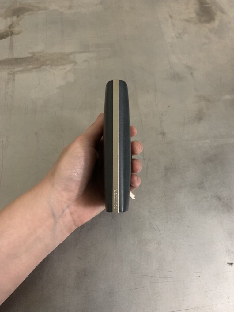 It is in pretty good condition but has been used lightly. I did try it out as a wallet but decided it was more than I needed for a daily carry wallet. The leather is still stiff, it hasn’t been worn in yet. You may notice some slight weathering/scuffs on the front.