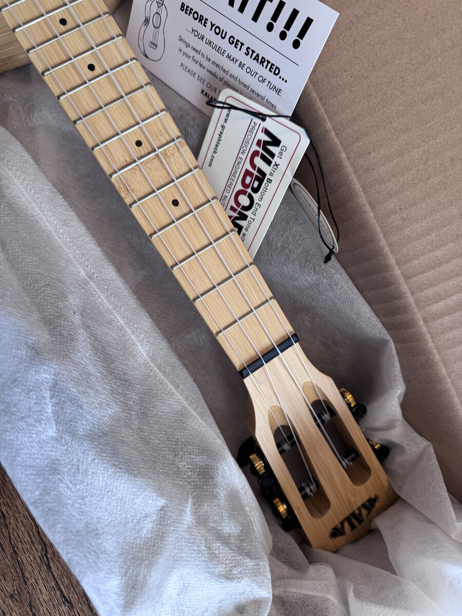 VenmoKala's KA-BMB-C Concert Ukulele is crafted from bamboo, the most eco-friendly wood choice for a ukulele. Highly renewable, bamboo regenerates quickly without being replanted. The many-layered, straight grain of the wood gives this collection a natural, earthy look. Bamboo provides a bright tone with great volume, harmonics, projection and sustain. The strength of bamboo makes for an extremely durable and resilient ukulele.
