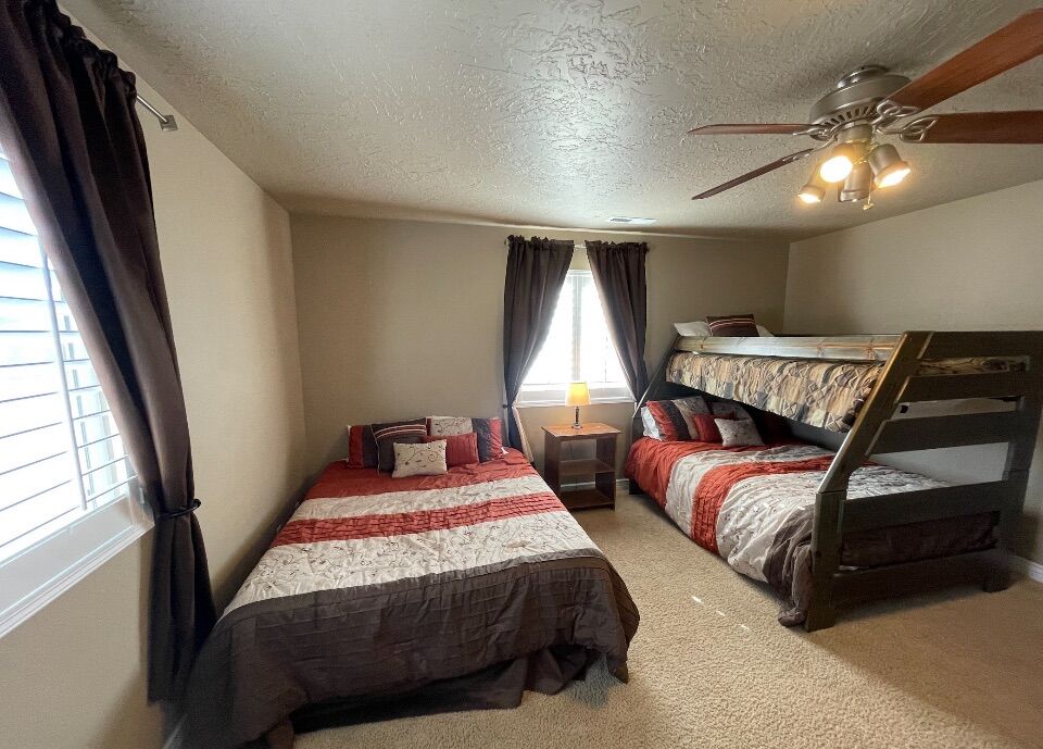 VenmoWelcome to our beautiful St. George Vacation home. Fully equipped kitchen, master bedroom with jacuzzi. Our home can sleep up to 8-10 people. The guest room has bunk beds plus a queen size bed. In the front bedroom there’s a full-size futon. Enjoy the sunsets on our deck or maybe just heat up the grill and BBQ. We have a theater room in the basement. Near amazing parks plus the Tuachan. Just text me for a booking!