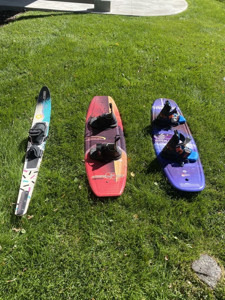 ZelleSold our boat and have lots of stuff. Get ready for next season now! Life vests - $25 each Wet suits - $30 for light weight and $40 for heavier ones Slalom ski - $25 Kids learner sled - $30 Porta potty (only used a couple times for #1) - $30 Tow behind raft (4 person, only used for two hours and paid $700) - $500 Ropes - all for $50