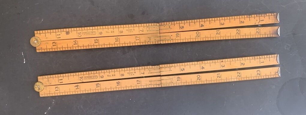 2 Stanley No. 68 boxwood folding rulers. 2’ 4 fold. Both show some warp and wear. 2 for $22. In Moab, can ship. Get me w email or by calling. Thanks !