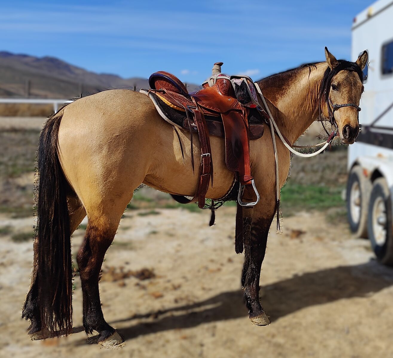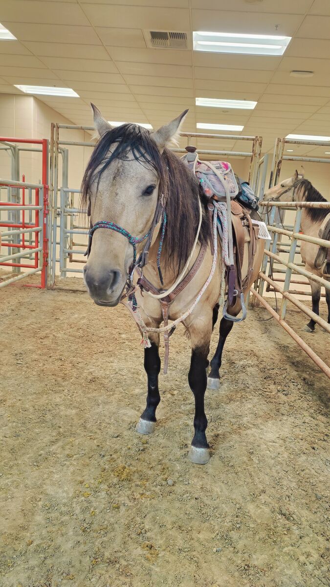 We really love his breeding, the greats speak for themselves and he is well packaged. He stands 15.1 with good thick bone. He has had 90 days professional training and was shown in a few local ranch and trail shows earning some money in each. He has good manners undersaddle around other horses. We hope to get him back in to show shape and compete again as time allows in 2026. He had 2025 off due to owners own pregnancy.