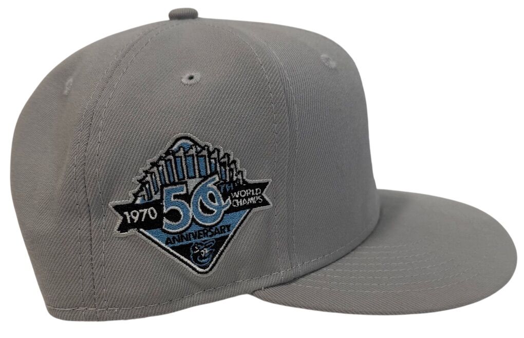 Sold out online! The Baltimore Orioles 1970 World Series Champions 50th Anniversary Fitted Hat by New Era is a limited edition cap celebrating the team's historic victory. This officially licensed Major League Baseball hat is designed for men in size 7 1/2, featuring the team's iconic color scheme of gray. Perfect for fans of the Baltimore Orioles looking to commemorate the special anniversary of their World Series championship in style.