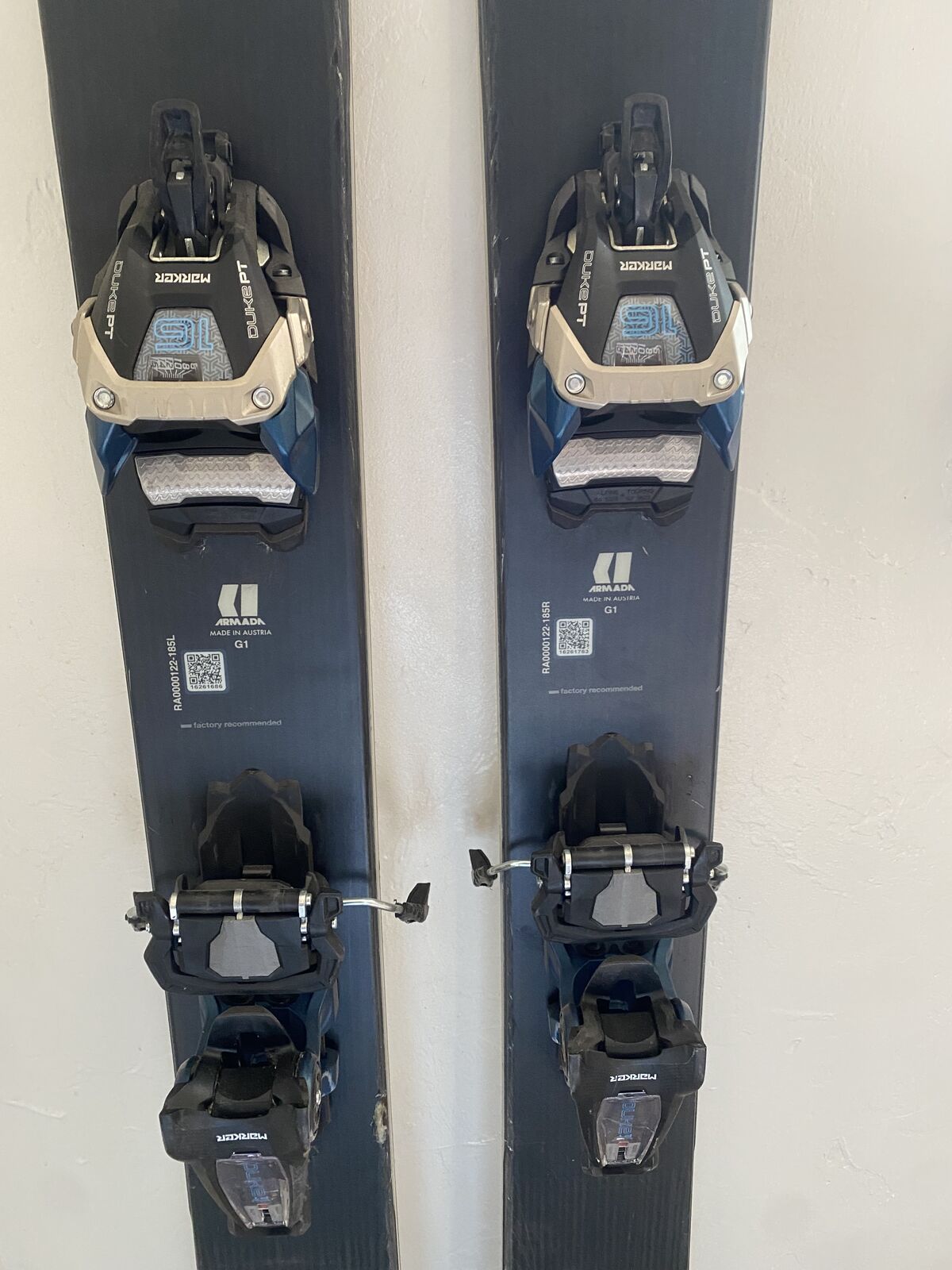 VenmoGreat powder skis! Just selling them bc I never use them and I don't ski backcountry anymore. no core shots, just a couple dings and scratches that have all been sealed/filled. Mounted to a 26.5 boot (302mm BSL). Comes with the duke pt16's and the touring skins.