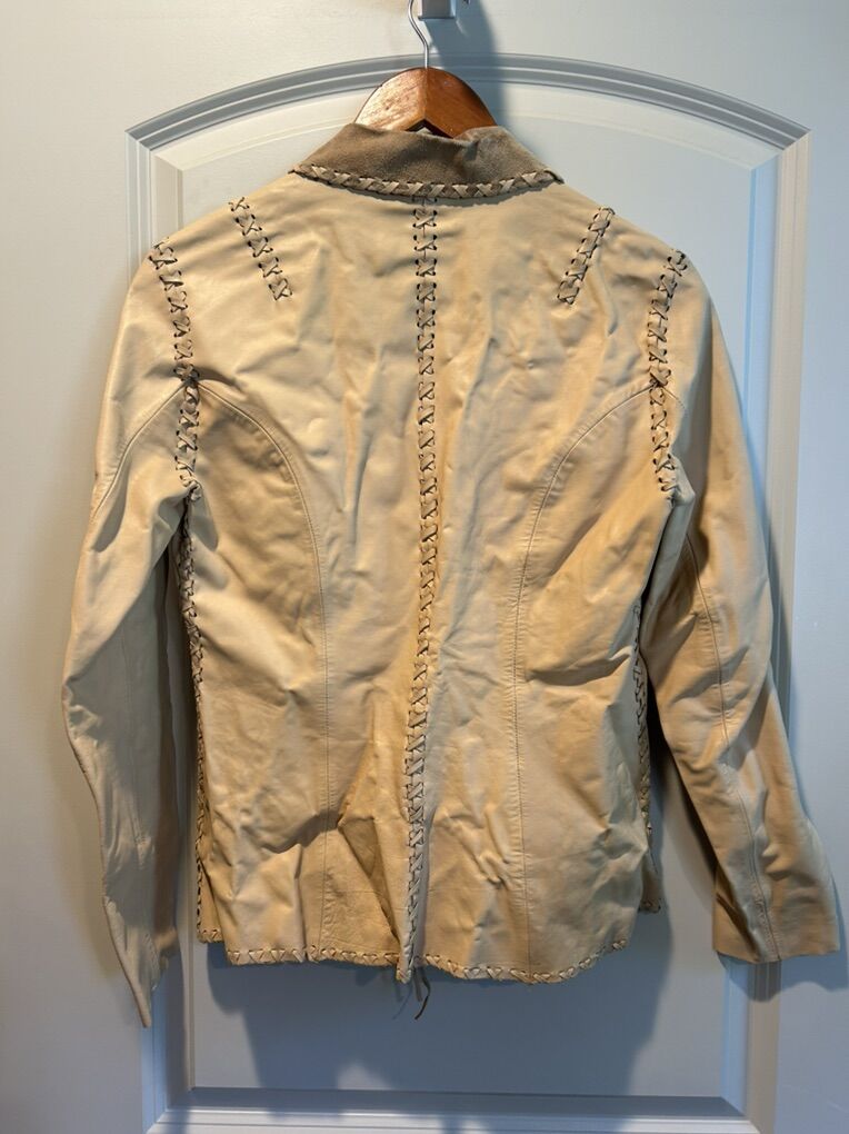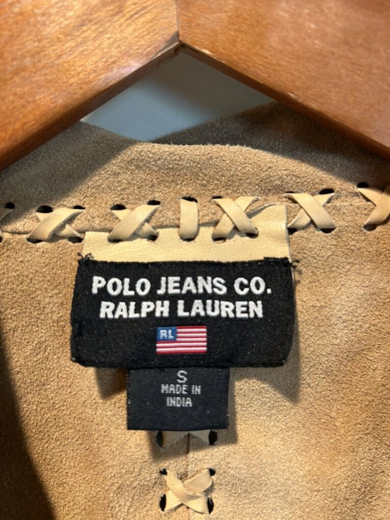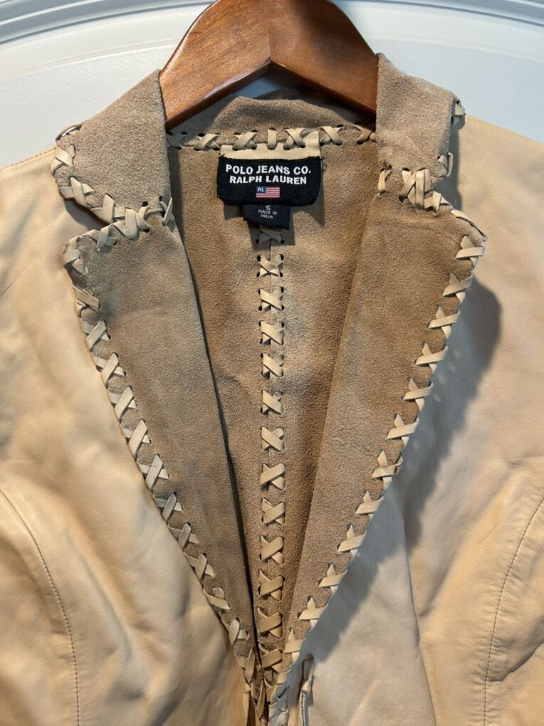 VenmoLike new women’s size small Polo Ralph Lauren tan cream leather blazer jacket with fringe. Clean smoke free. Cash or Venmo. Pick up from Alpine