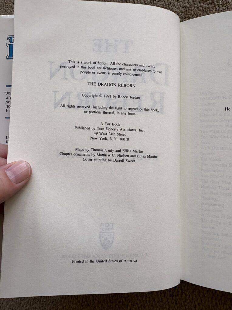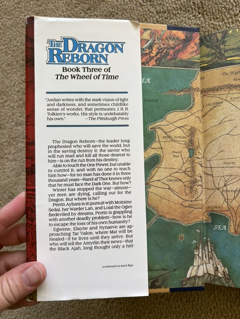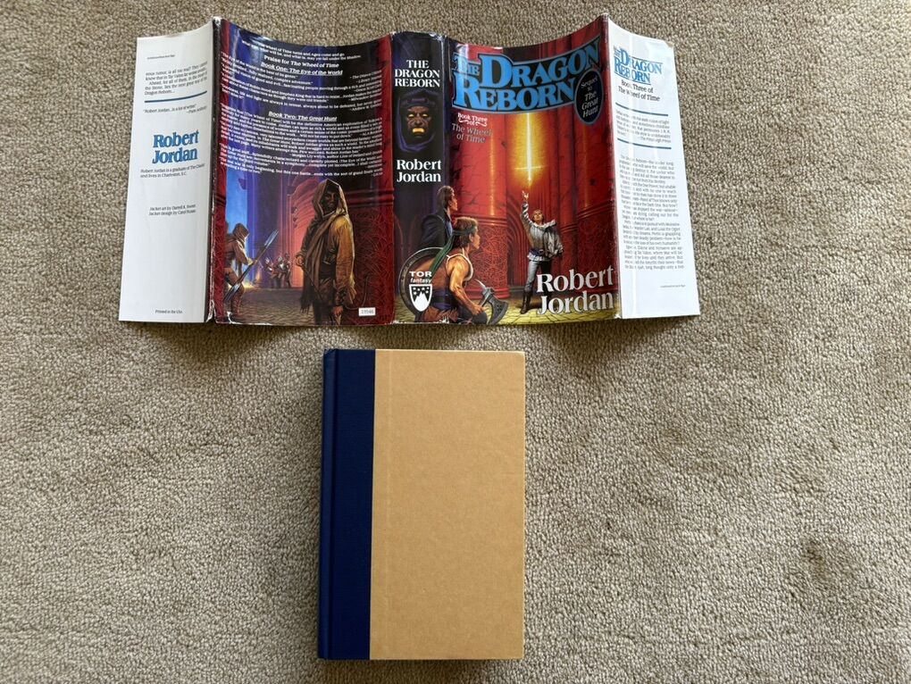 The Dragon Reborn: Book 3 in The Wheel of Time series by Robert Jordan. Hardcover (smaller 8.5” version) in very good condition, including dust jacket (jacket slightly worn/torn on corners/edges--see photos). Tor Fantasy, 1991, 562 pages. Text only. Cash or Venmo.