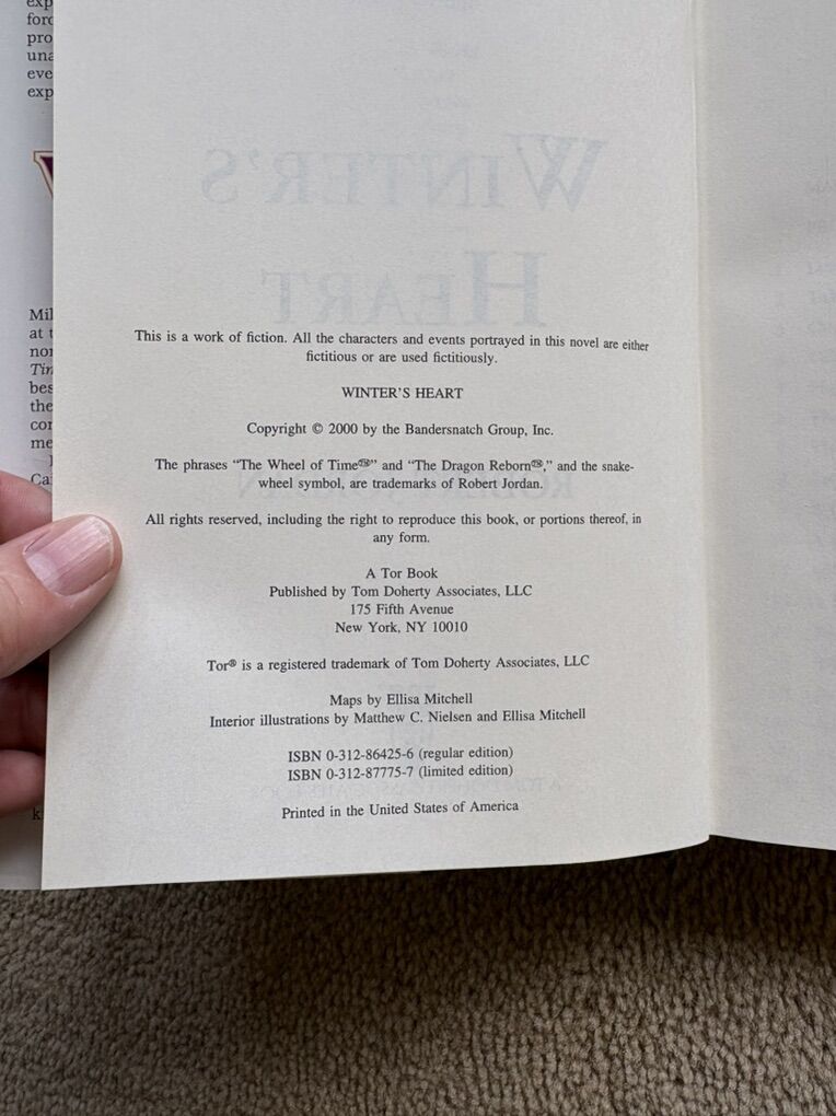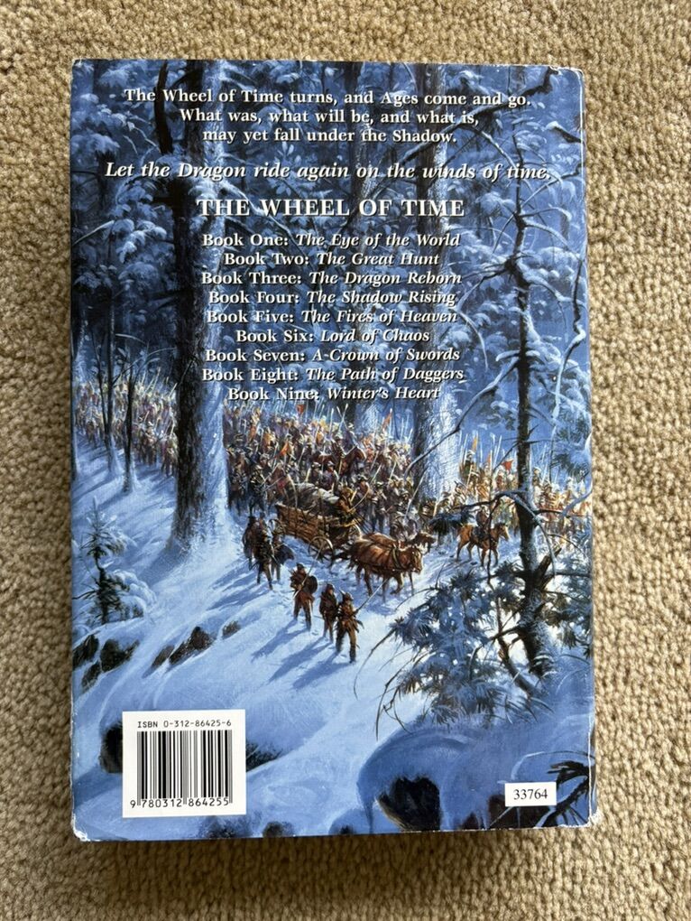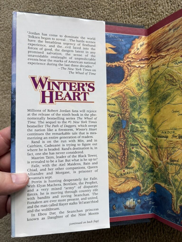 Winter's Heart: Book 9 in The Wheel of Time series by Robert Jordan. Hardcover (smaller 8.5” version) in very good condition, including dust jacket (jacket slightly worn on edges/corners--see photos). Tor Fantasy, 2000, 543 pages. Text only. Cash or Venmo.
