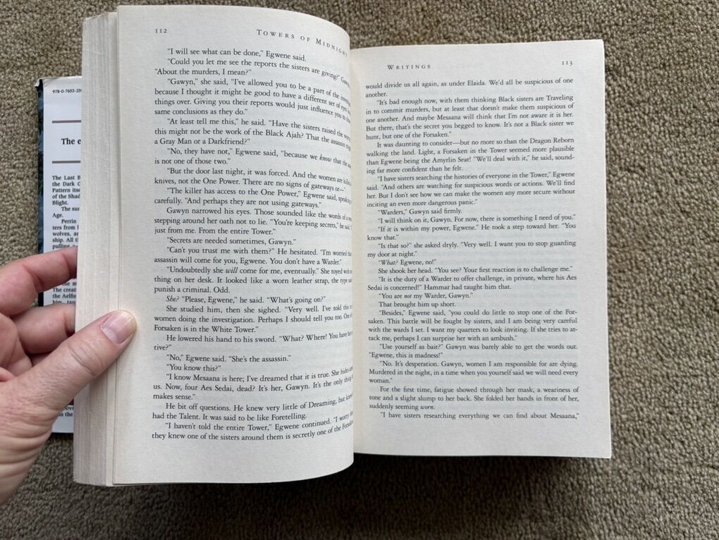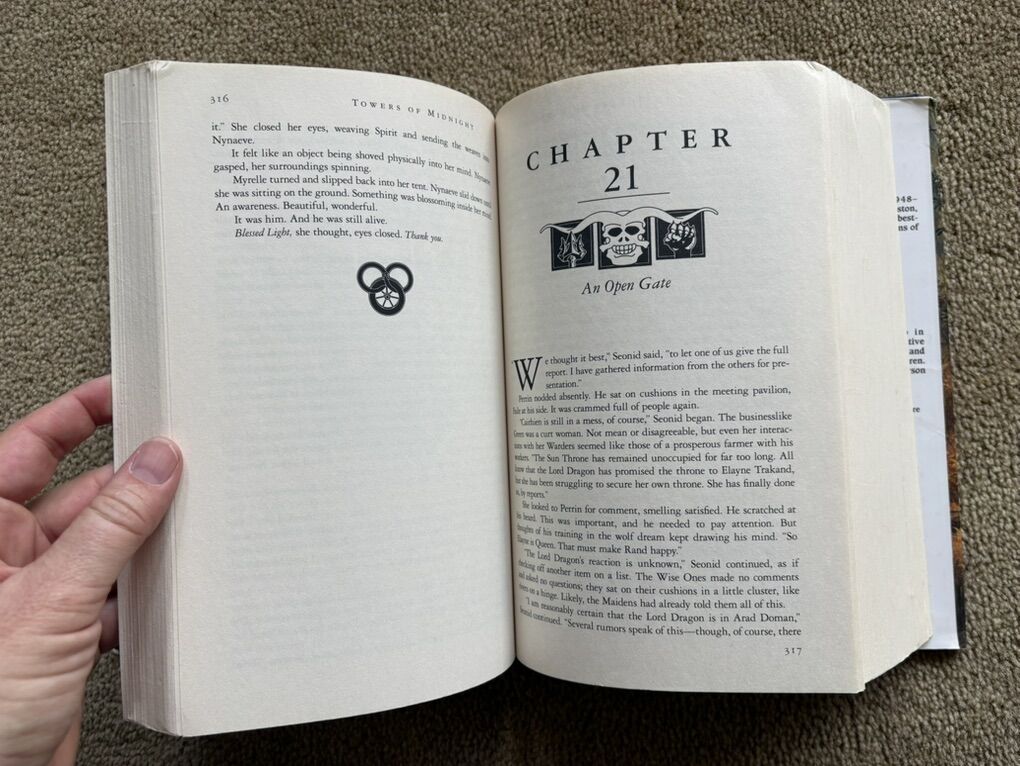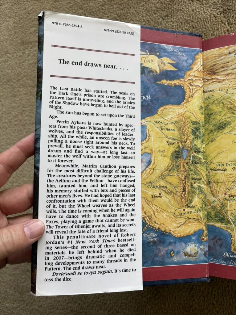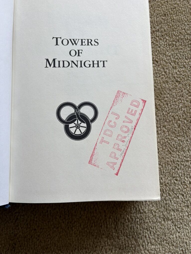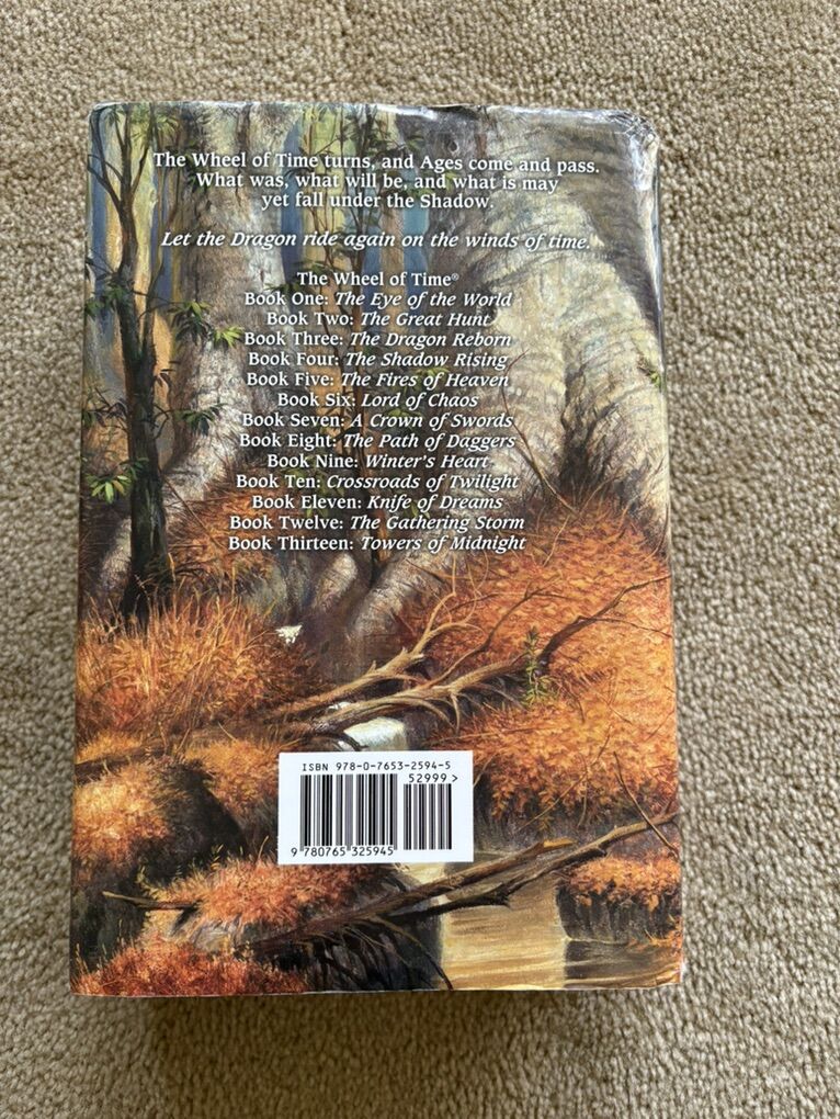 Towers of Midnight, by Robert Jordan and Brandon Sanderson. Book 13 in The Wheel of Time series, finished by Sanderson after Jordan died. SIGNED by Robert Jordan on title page (electronic posthumous signature). First edition hardcover (larger 9.5” version) in very good condition, including dust jacket (some wear/tears on corners--see photos). Tor Fantasy, 2010, 861 pages. Text only. Cash or Venmo.