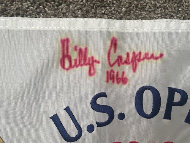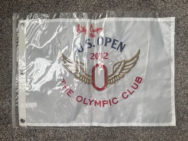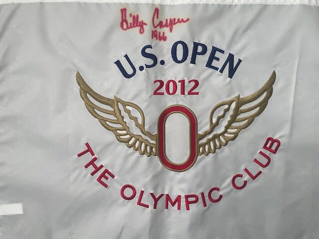 Venmo2012 U.S. Open Olympic Club official pin flag signed by Hall of Fame golfer Billy Casper. Embroidered flag (not printed). Signature is clear, no COA (certificate of authenticity).