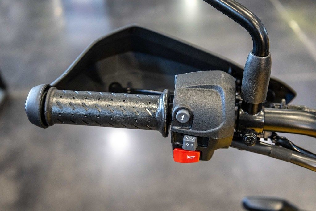 Compact and easy to read, with a classic analogue speedometer dial and LCD readout for engine rpm, fuel level and gear position, blending traditional style with modern functionality.