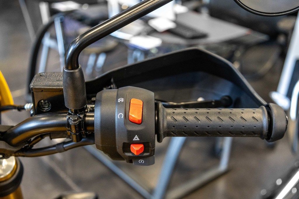 Strong, lightweight Excel rims with beautifully side-laced stainless steel spokes offer classic Scrambler style with increased capability for off-road exploration. Fitted with tubeless Metzeler tires for increased puncture protection.