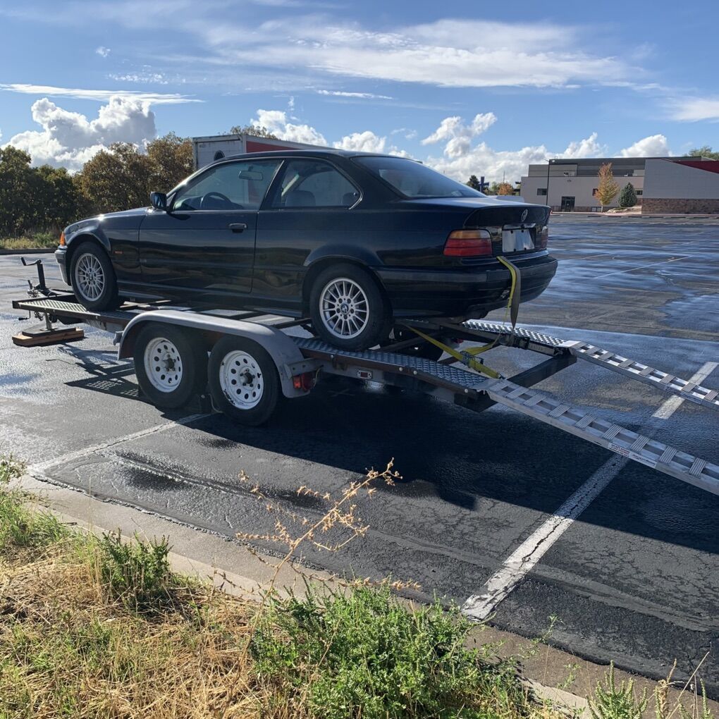 Custom built car hauler for small / lightweight cars or side by sides. Dove tail, lights work, good tires, just needs paint. Aluminum ramps work great 20’ over all length