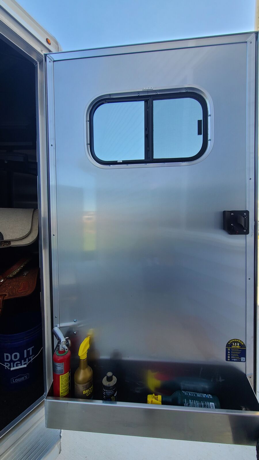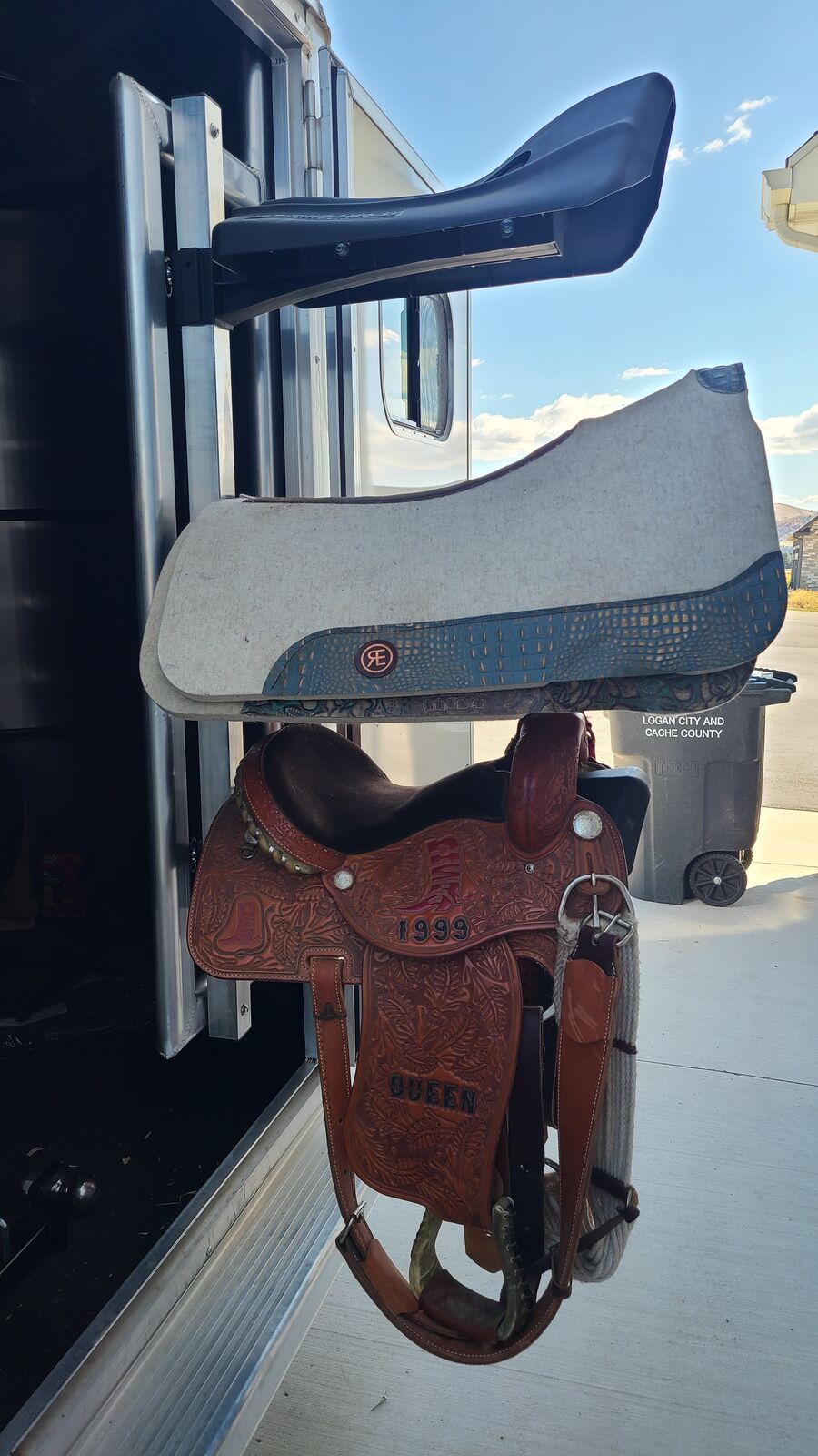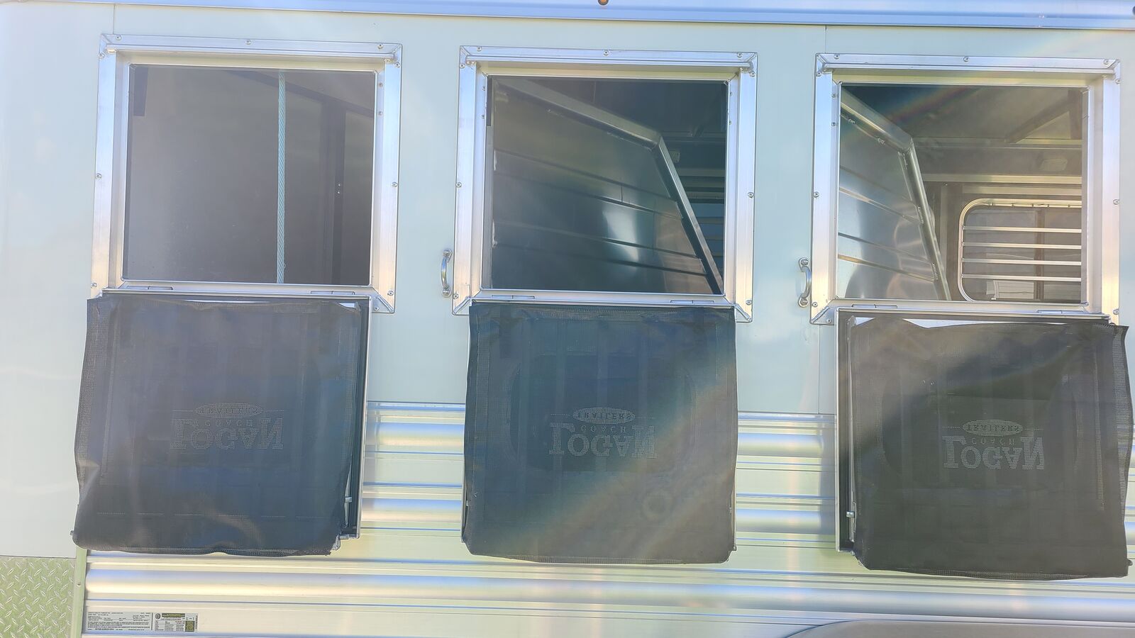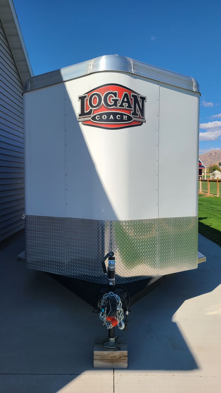 2023 Logan Coach Bullseye 3 horse slant load bumper pull trailer. Exellent condition. Original owner. Put less than 500 miles on it in 2 years we owned it. 3.5K axles with 8 ply tires. 7' tallx6'9" wide. 3 HD drop down windows with lowerable jail bars and screens. 3 sliding windows with screens. HD tack room door. 35 gallon corner water tank in tack room. 3 place swing out adjustable saddle rack. 4 blanket bars and 12 bridle hooks in carpeted tack room. Spare tire. Pop up roof vents. 2 HD adjustable/telescoping padded stall dividers. Wood floor with rubber mat. Vortex rubber coating on inside stall area. Steel frame with aluminum exterior. LED lights in stall area, tack room and around exterior. Tows very well. Wheel/tire covers included.