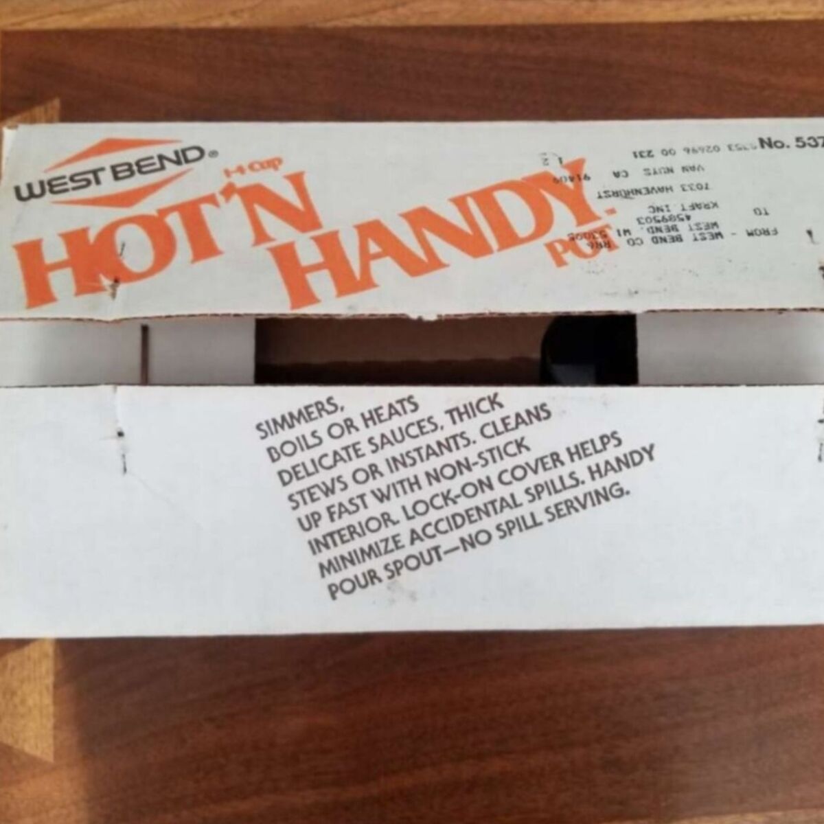 CashAppVintage West Bend “Hot N Handy” personal warming pot, new in original box. Never used.