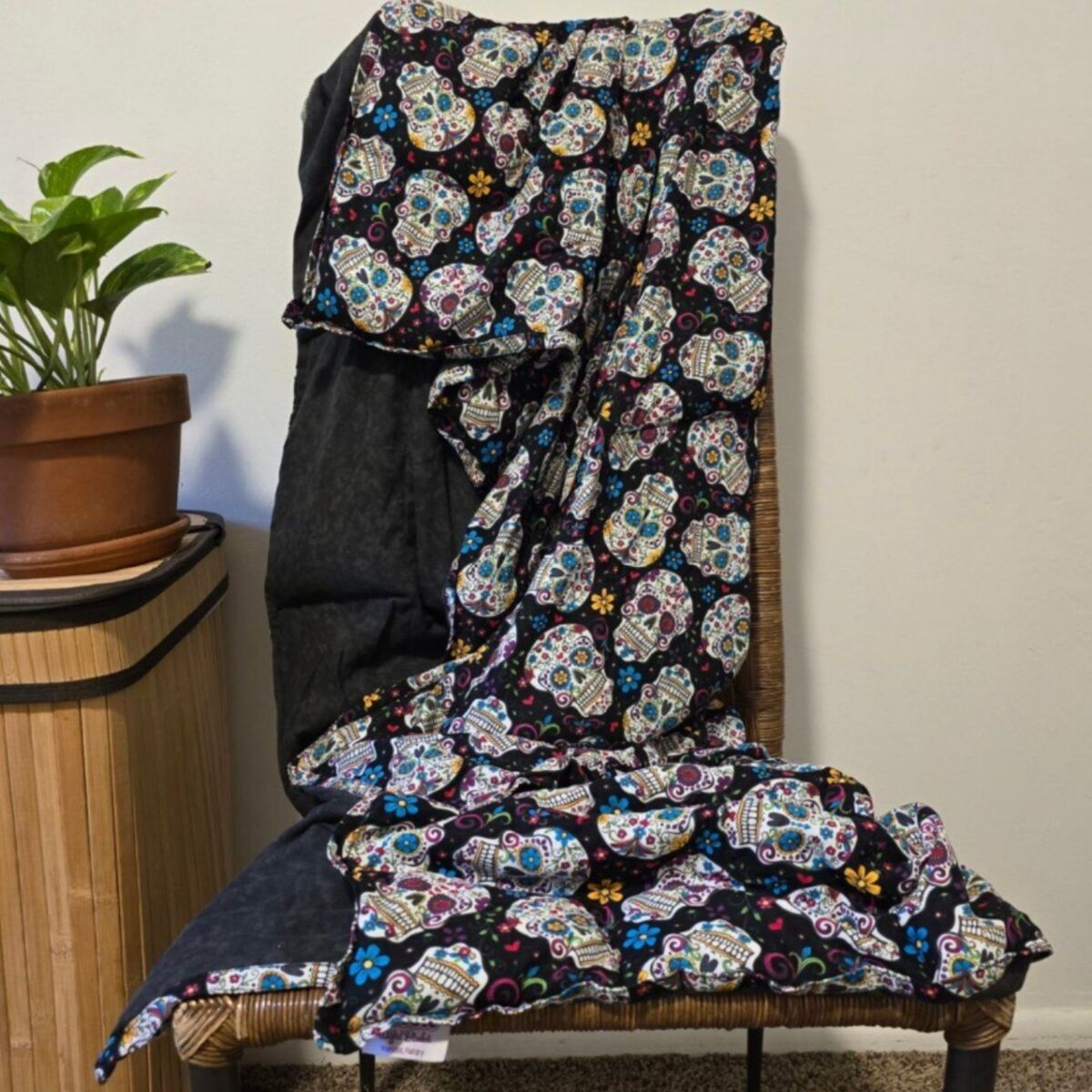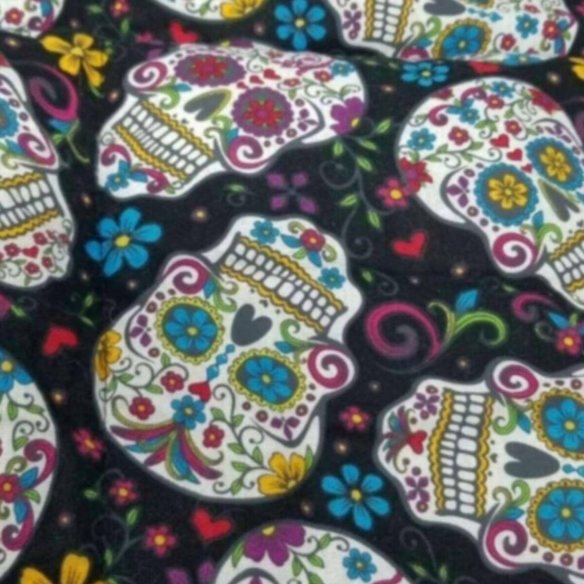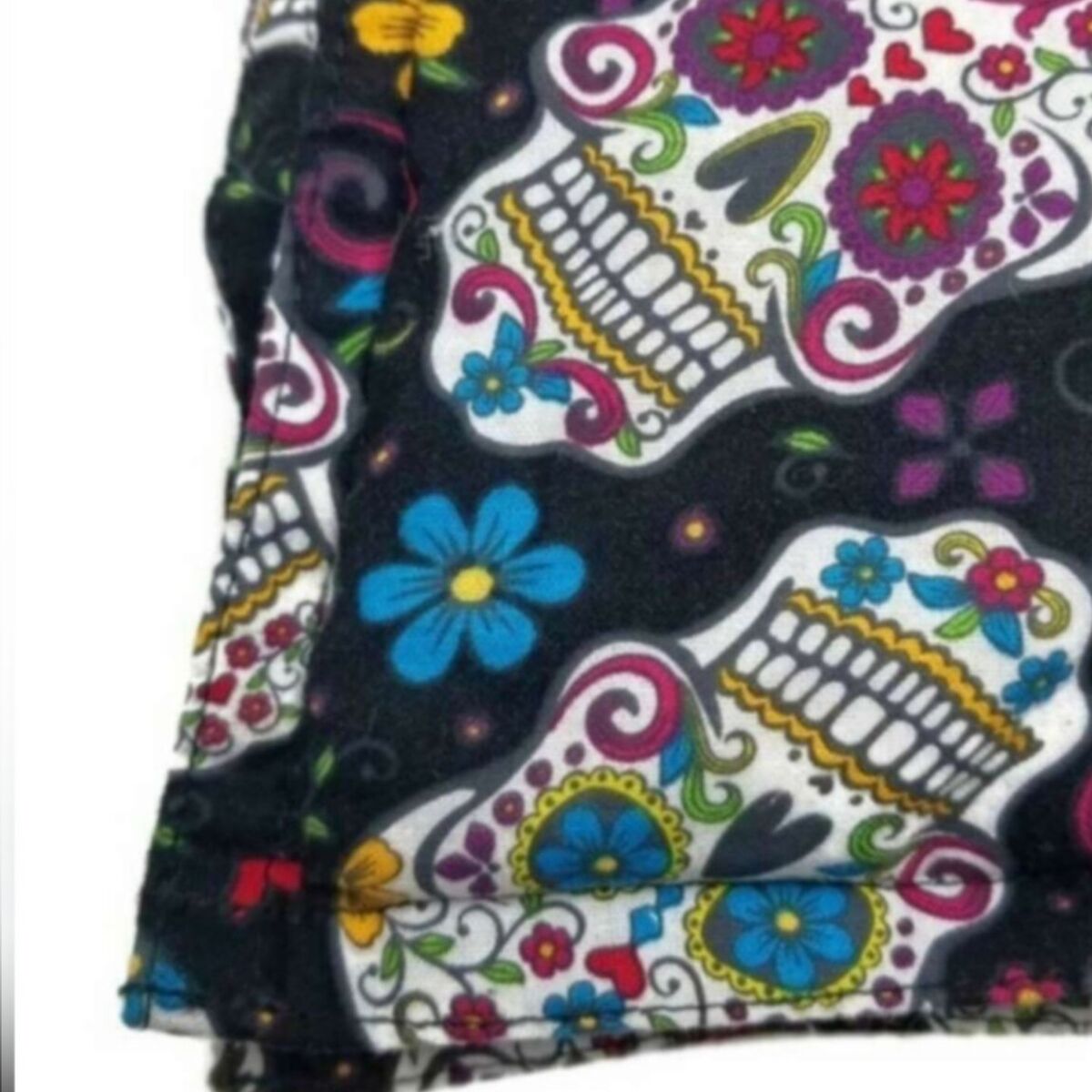 Dia de los Muertos / sugar skull print on one side and soft black on the other. Machine washable.