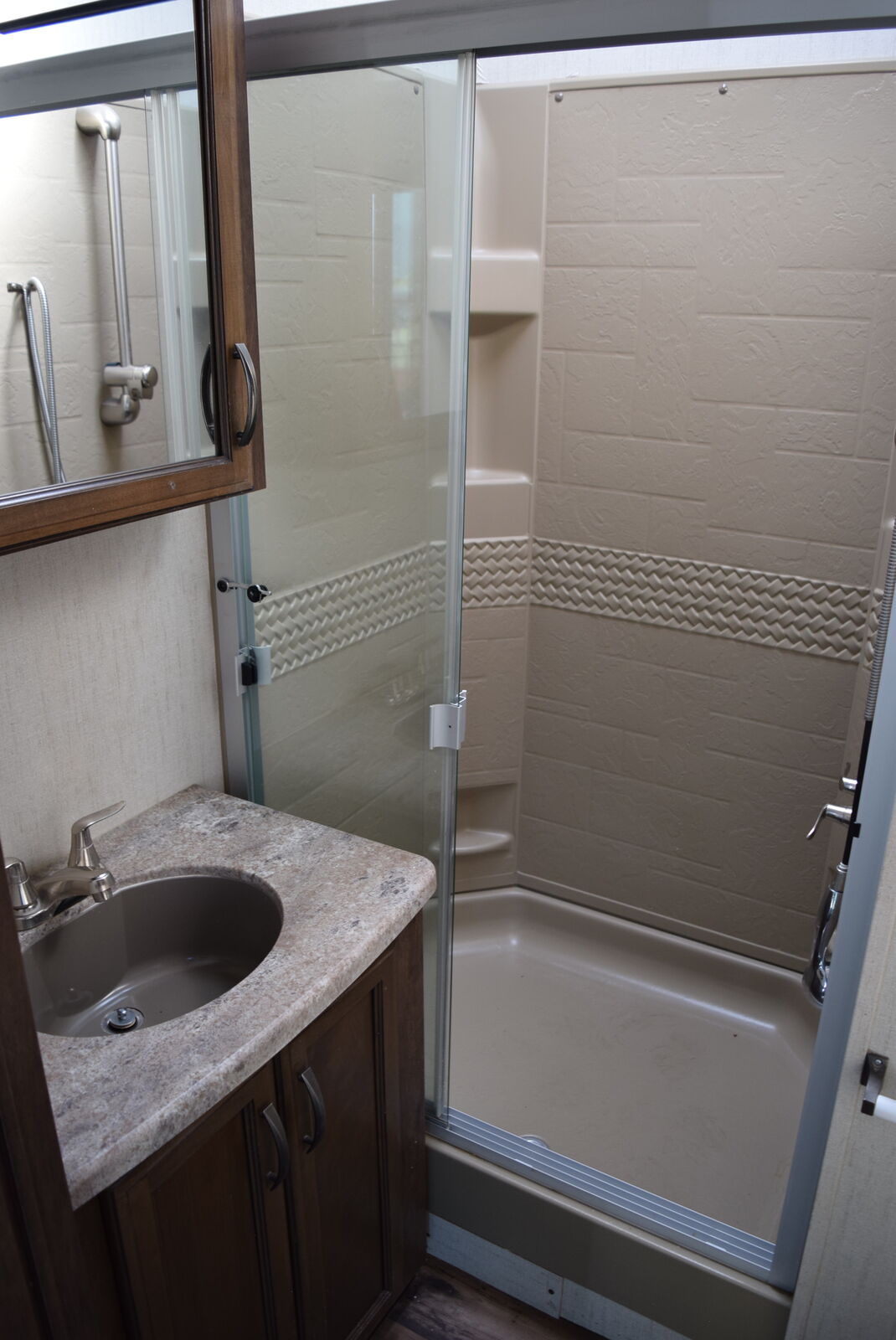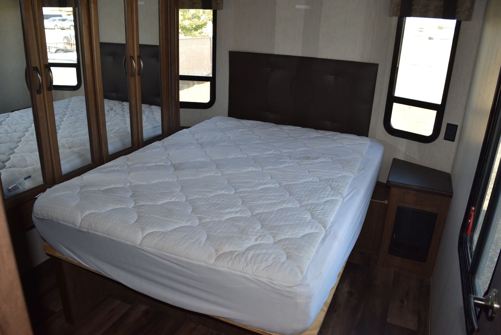 Up front, the private master bedroom includes a king bed, large closet with washer/dryer prep, and dresser with TV hookup. With extra headroom and storage space, it feels like a true retreat.