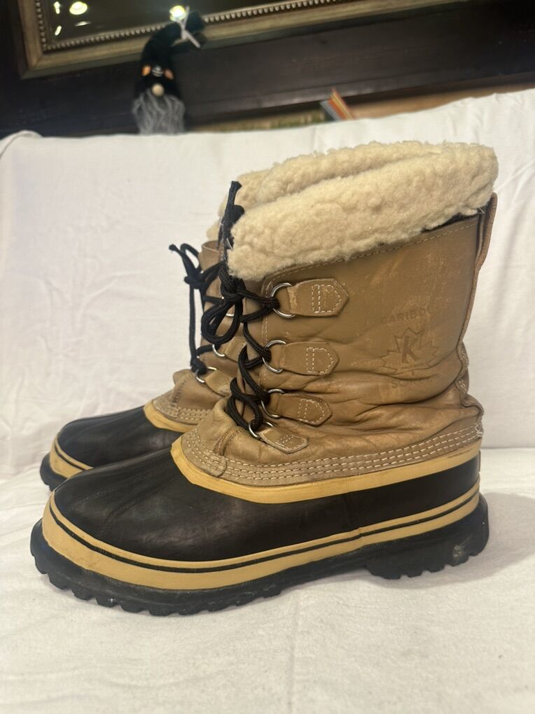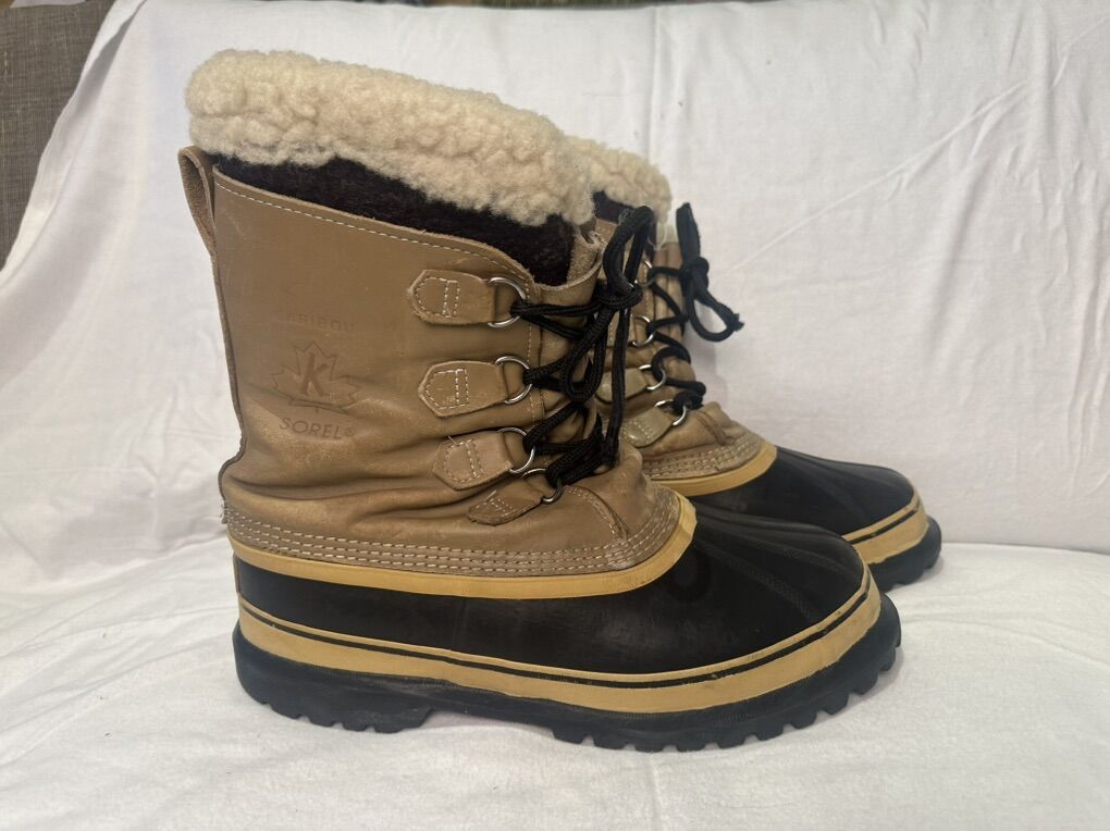Sorel caribou men’s size 10 winter boots with beige leather uppers and black rubber foot bed and removable liners. These are in good condition, see photos for details. I take cash or Venmo, but cash is preferred. Text is best. 801-201-4446. Check out my other ads for additional sizes and styles.