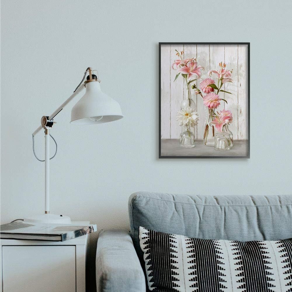 ApplePayStupell Industries Spring Pink Florals in Glass Jars Feminine Rustic Flowers, Designed by Ziwei Li Wall Art, 24 x 30, Black Framed