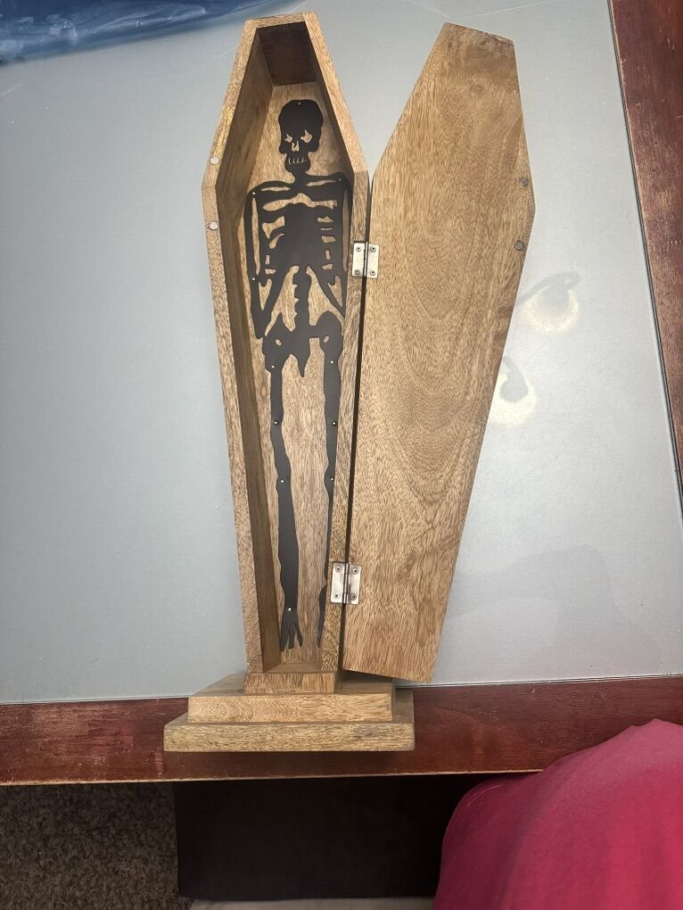 Venmowooden decor coffin with metal skeleton metal plate inside