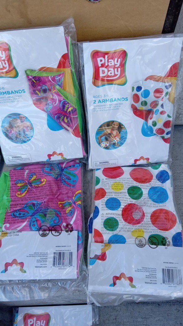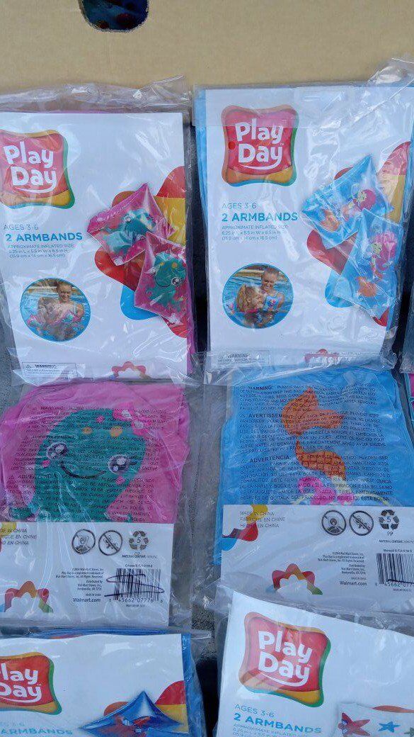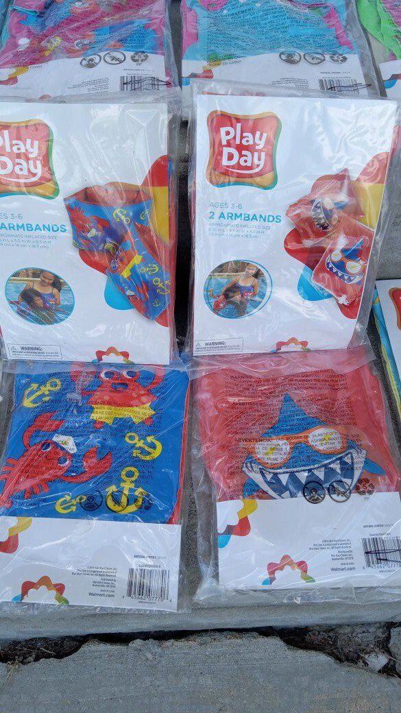 Venmo(Price reduced on 12/8) Up for sale are many swimming inflatable arm bands, or floaties for children/kids by Play Day featuring sea animals and other fun sea/ocean themes. Large variety to pick from including starfish, sharks, crabs, colorful dots, octopuses, fish, and butterflies. Boy and girl colors and designs. These are all brand new. Ages 3 to 6 with 2 armbands per package.