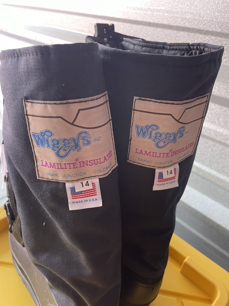 These Wiggy’s boots are brand new and made in Grand Junction, Colorado. They feature Wiggy’s famous Lamilite insulation — warm, lightweight, and moisture-resistant, perfect for snow, ice, and extreme cold conditions.
