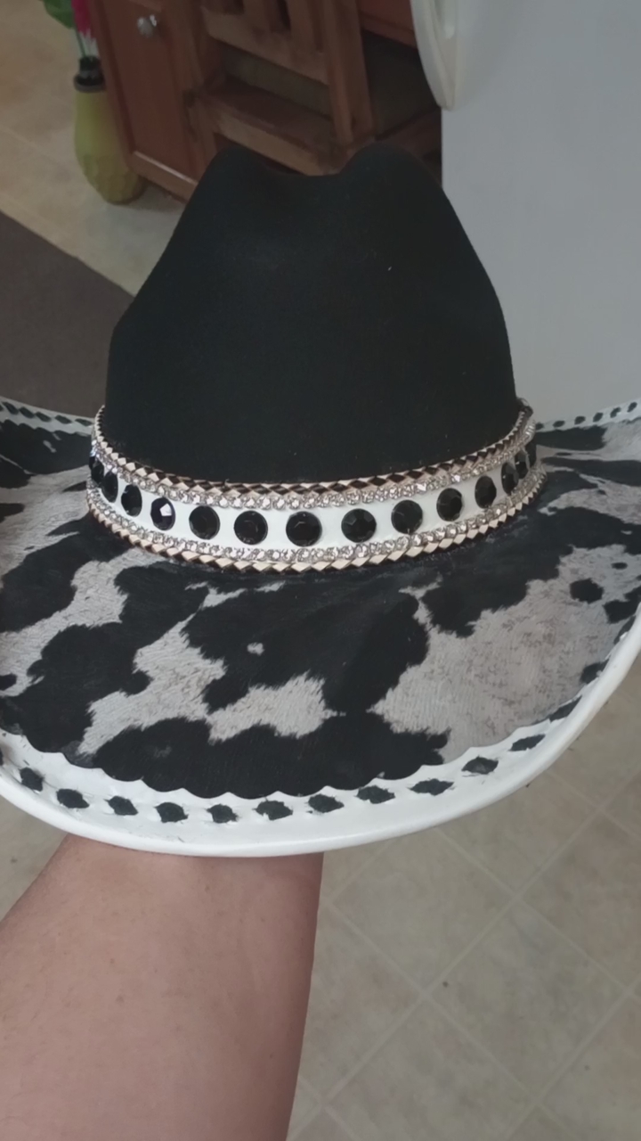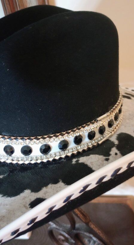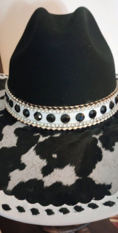 This is a beautiful custom cowboy hat, with a lot of leather and bling. You will never see another hat like this one.l, it it truly one of a kind. I am asking 250.00 for this hat, if it is your size and you would like to check it out, just text Steve at 801-623-1373 to schedule an appointment to stop by and see it. Be sure to check out all my ads here on KSL, and Happy Shopping!