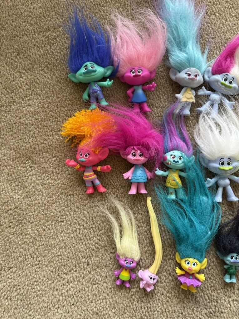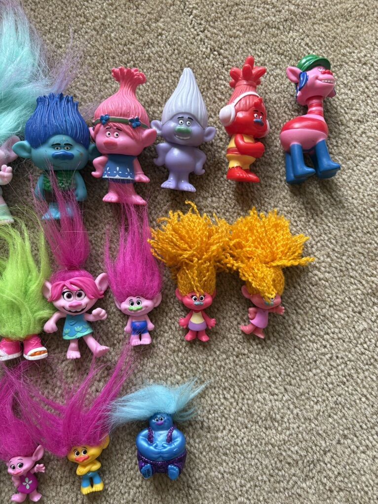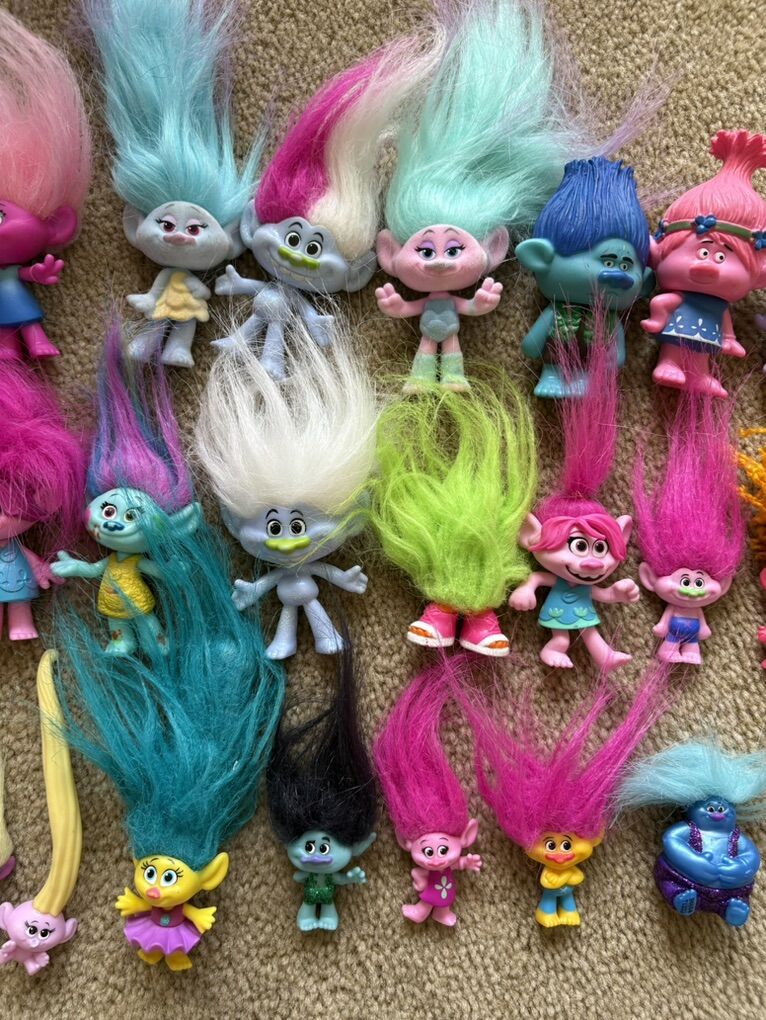 26 Toy Figures from the Trolls Movies—various sizes from various sets, good condition. Text only. Cash or Venmo.