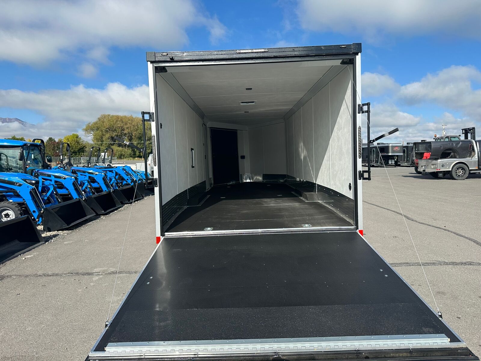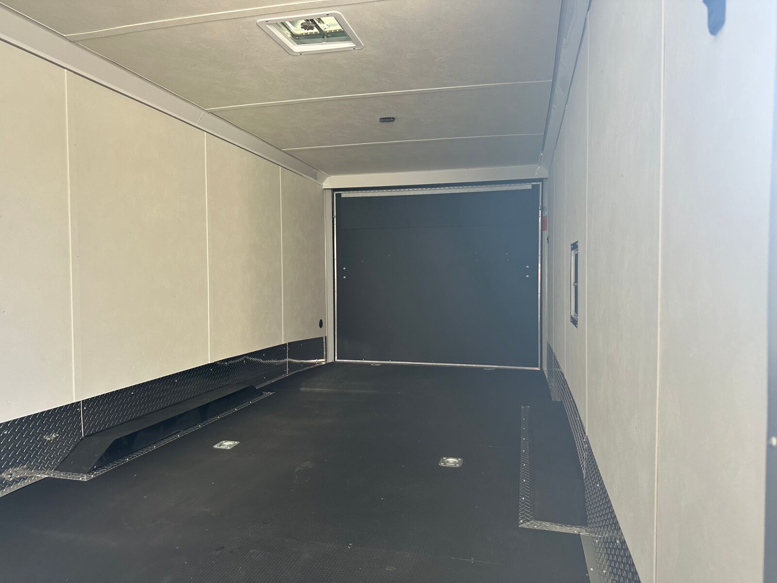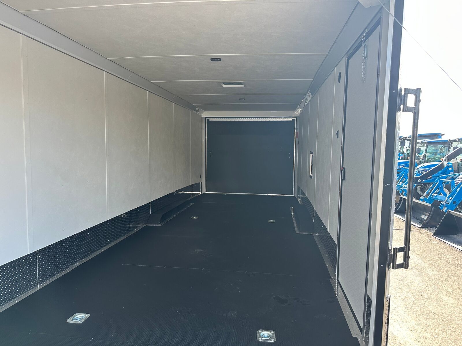 28' Sled Trailer Silver with Black Trim Poly Bead Flooring Lined Ceiling