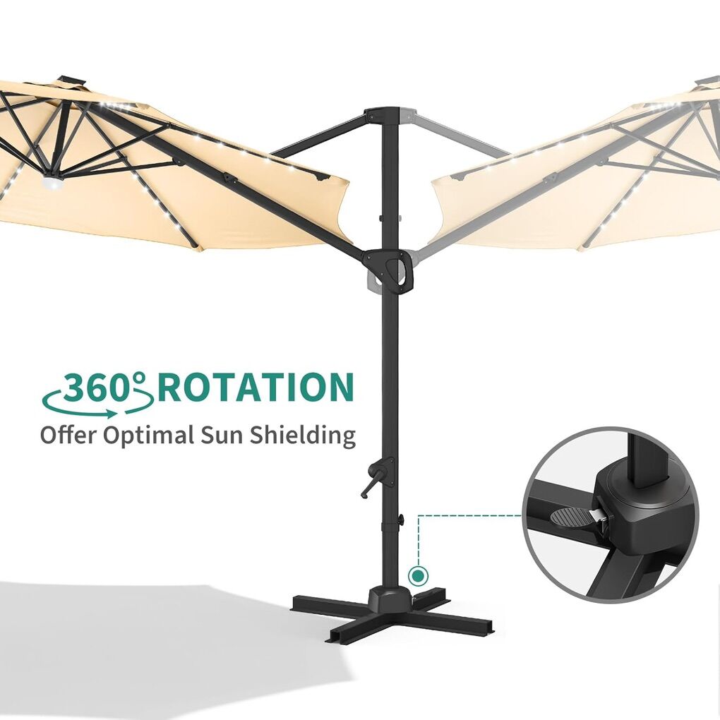 New in box I have two No base included Elevate your outdoor oasis with our premium Hampton Bay 11-ft. offset patio umbrella, the epitome of style and functionality. Crafted with rust-resistant materials in a chic putty hue, it effortlessly enhances any outdoor space.