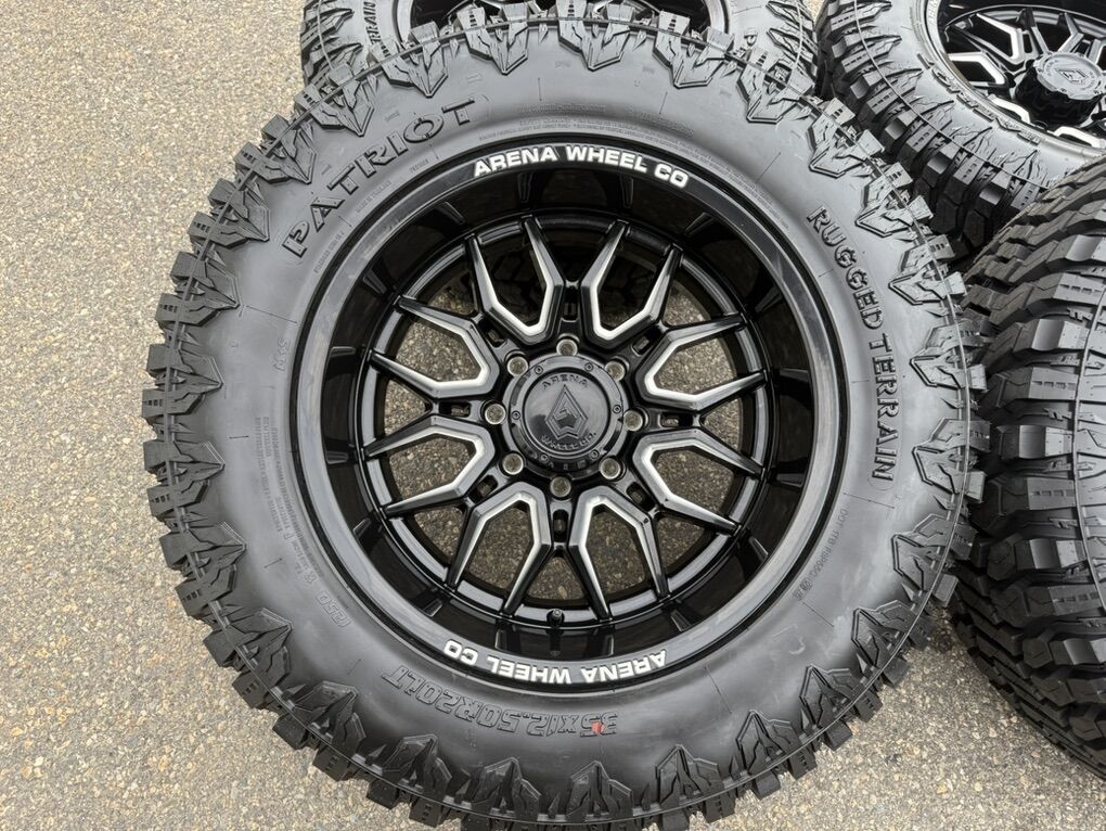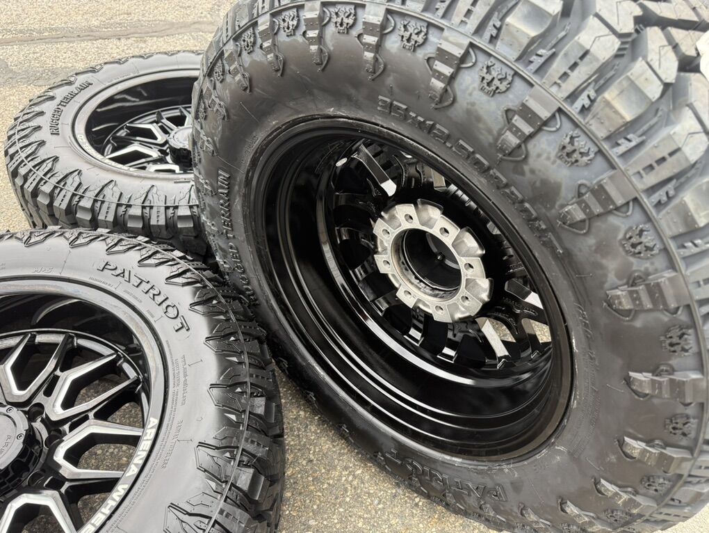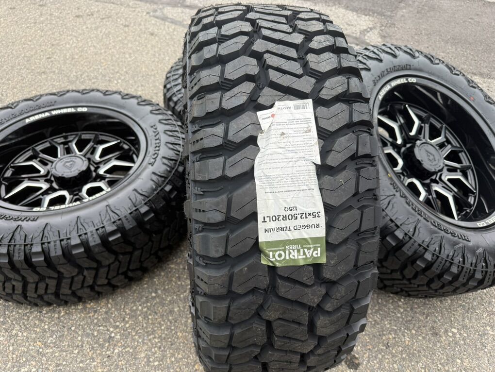 Brand new wheels and tires. Stickers still on everything, never mounted to a truck. Tires are Patriot R/T 35x12.50x20 12 ply Load Range F 80 psi rated 125 load rating