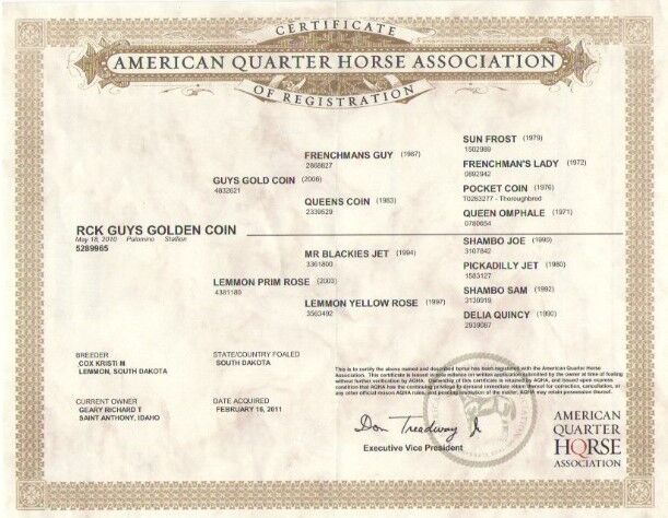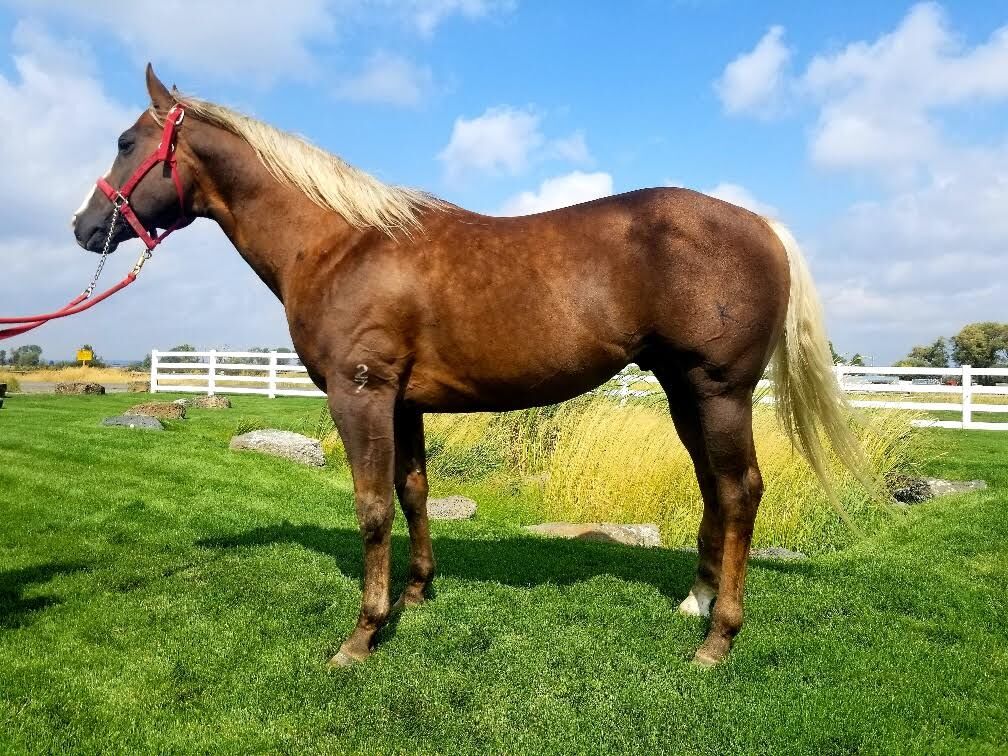 Tammy is a 9 year old thoroughbred type grade bay broodmare. She has been part of our recip herd as well as having her own foal last year. She is not broke to ride. She is currently pregnant with a 2026 foal by RCK Guys Golden Coin that is due in April/May. He was a barrel racing stallion before he was retired to be a breeding stallion. I have included a photo of him and his papers in the post. Color options for this foal are bay, red, black, buckskin, palomino, or smoky black!