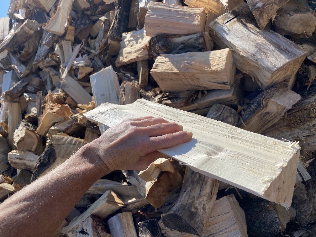 I do what I can to provide dry wood for burning. I keep the logs in my yard for a minimum of 1 year before I split them. Then, once split, I try to leave the split wood in the sun to dry for at least a year before selling it. However, I am unable to keep the wood covered from wet weather.