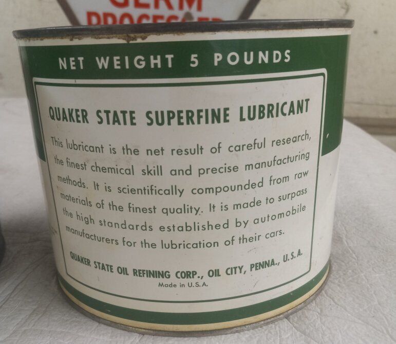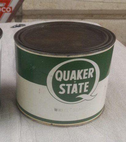 Quaker State grease can. 5 pound. Not sure if it has ever been opened. See photos for the condition. $40.00. Cash only.