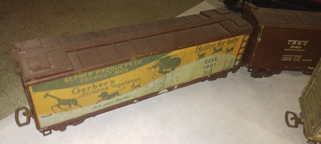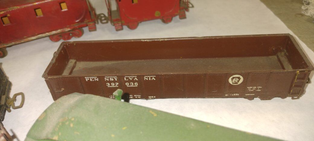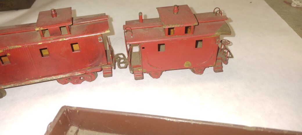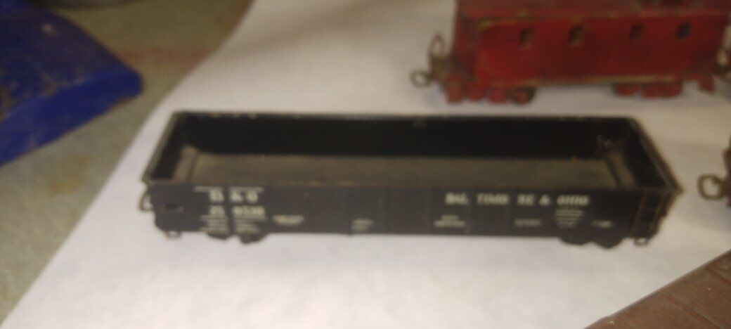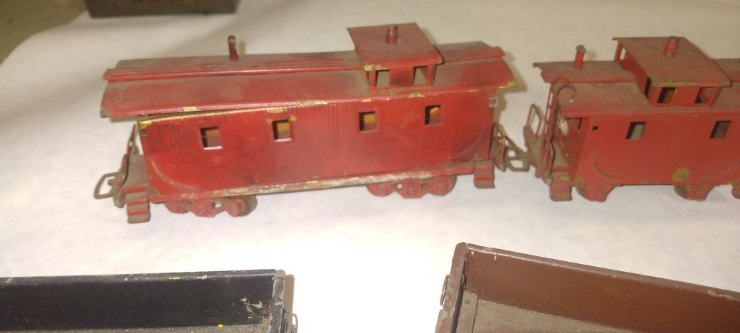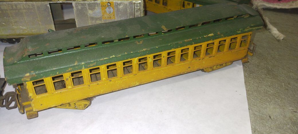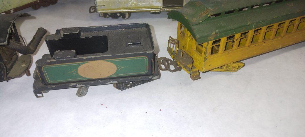 Antique electric train, i have had it for over 40 years and the previous owner told me it was antique when i bought it, some of the doors are inside the cars, it needs someone with experience to refurbish it. I think it is an O gauge, the wheels are about 1 inch apart. i dont know very much about it, you have to inpect it.