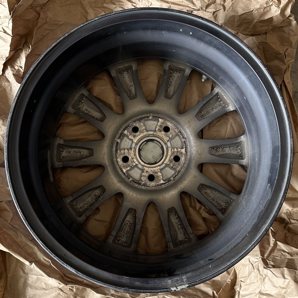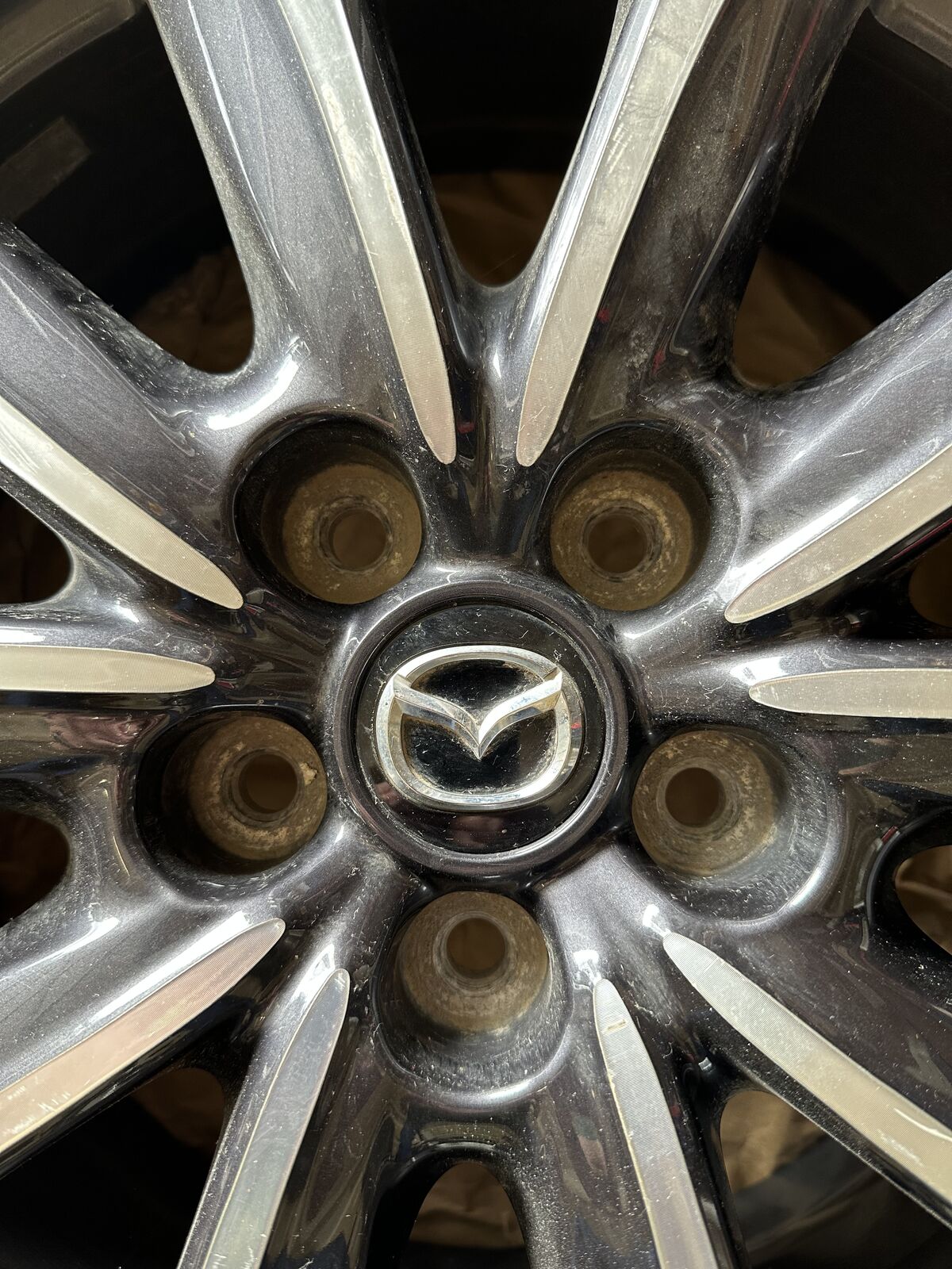 One aluminum wheel for 2019 through 2021 Mazda CX-3. Includes center cap and tire stem. Not sure if TPMS sensor works. Very good condition. $75 obo.