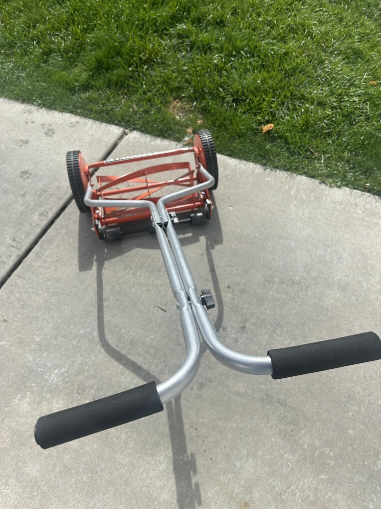 VenmoThis is a push lawnmower or reel lawnmower. It’s powered by you!! Please like this as nice to have around for small spots of grass or yards that don’t really need to have a grass powered lawn mower for.