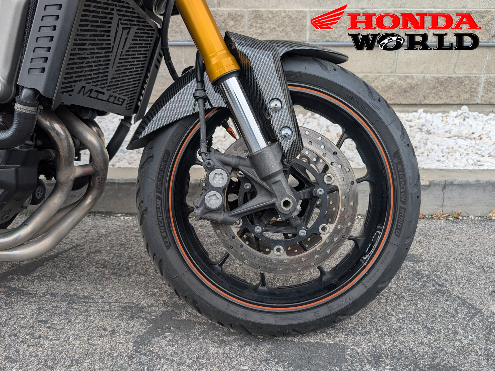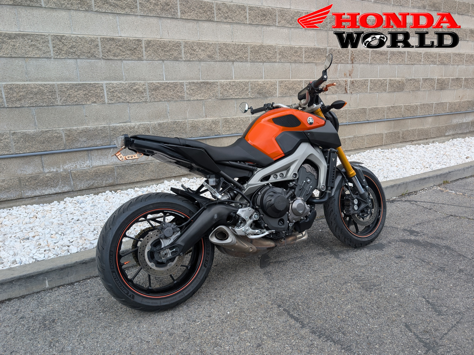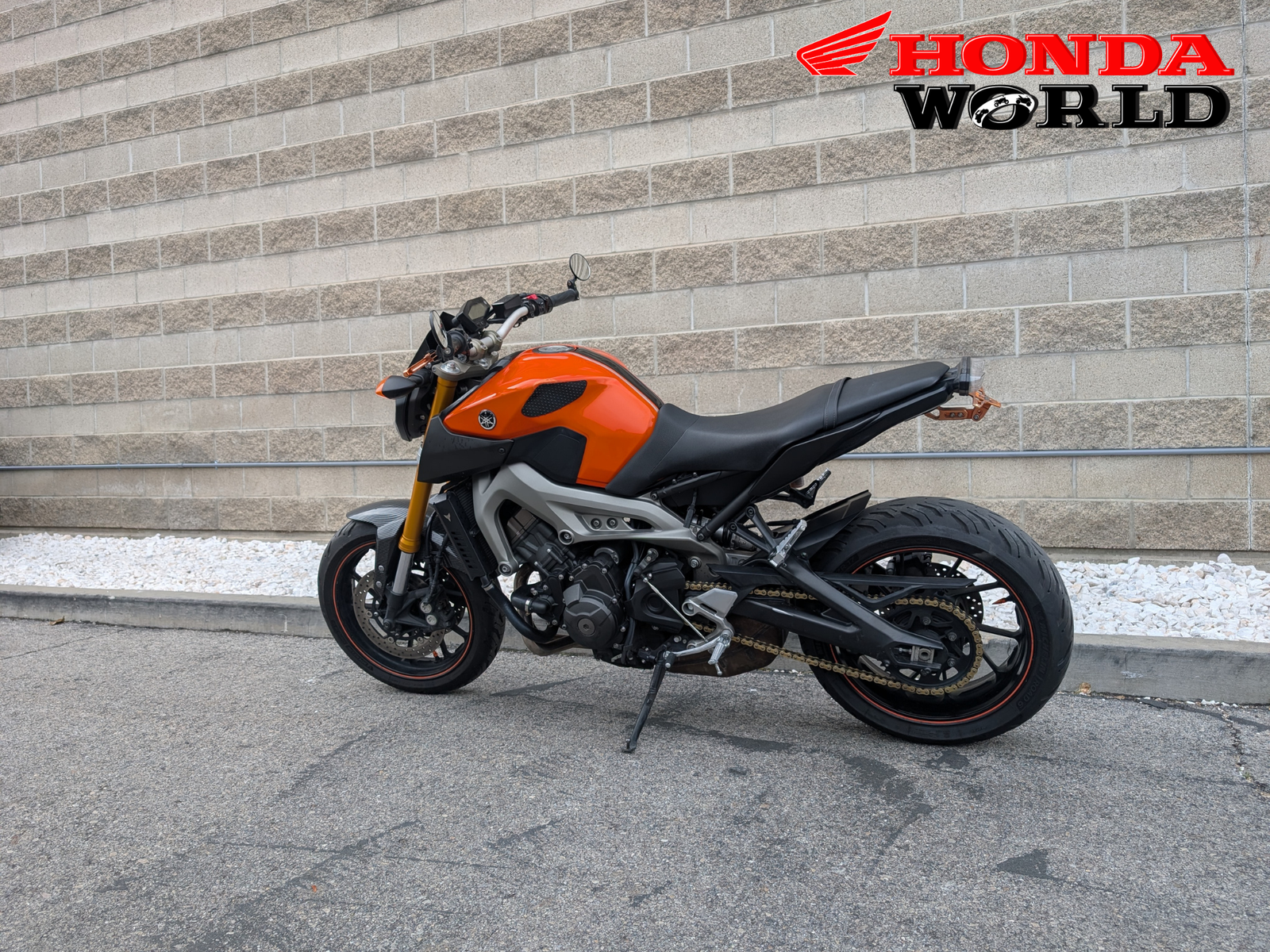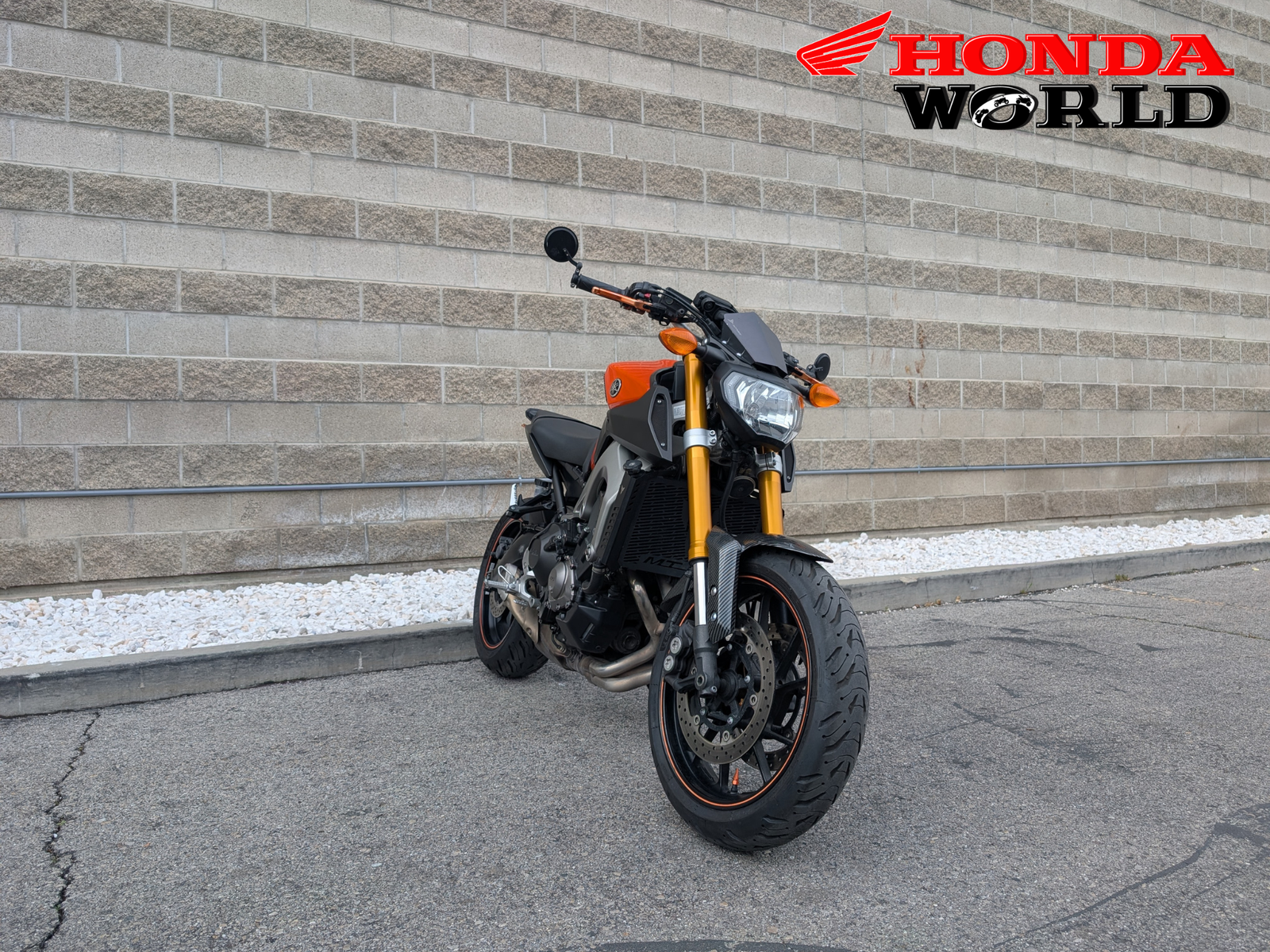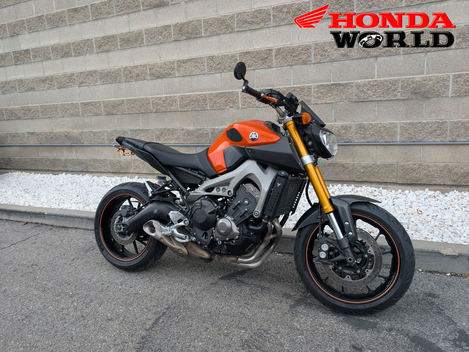 Honda World in South Jordan just got this 2014 Yamaha FZ-09. The 2014 FZ-09 (now known as the MT-09) is the bike that redefined the naked sportbike class. It’s an enthusiast’s favorite for its incredible power-to-weight ratio, unique three-cylinder engine note, and light, nimble chassis. Making the perfect blend of performance and ergonomics! This bike is ideal for intermediate to advanced riders that want a comfortable daily commuter or spirited rides on the weekend. Sporting a fender eliminator, bar end mirrors, levers, tank grips, carbon fiber front fender and radiator guard!