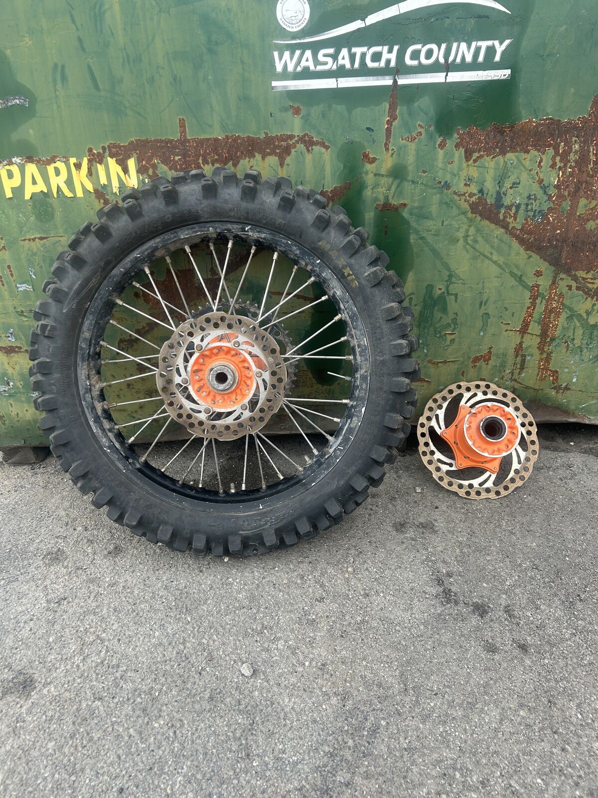 VenmoSelling a Wheel set with the complete rear wheel and the front wheel hub w/ rotor. Rear tire is still in great condition with plenty of life remaining (85%). The sprocket and both rotors are also in great condition, ready to install and use.