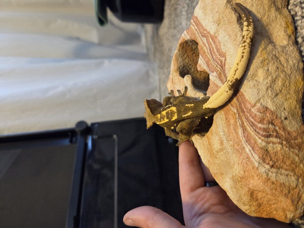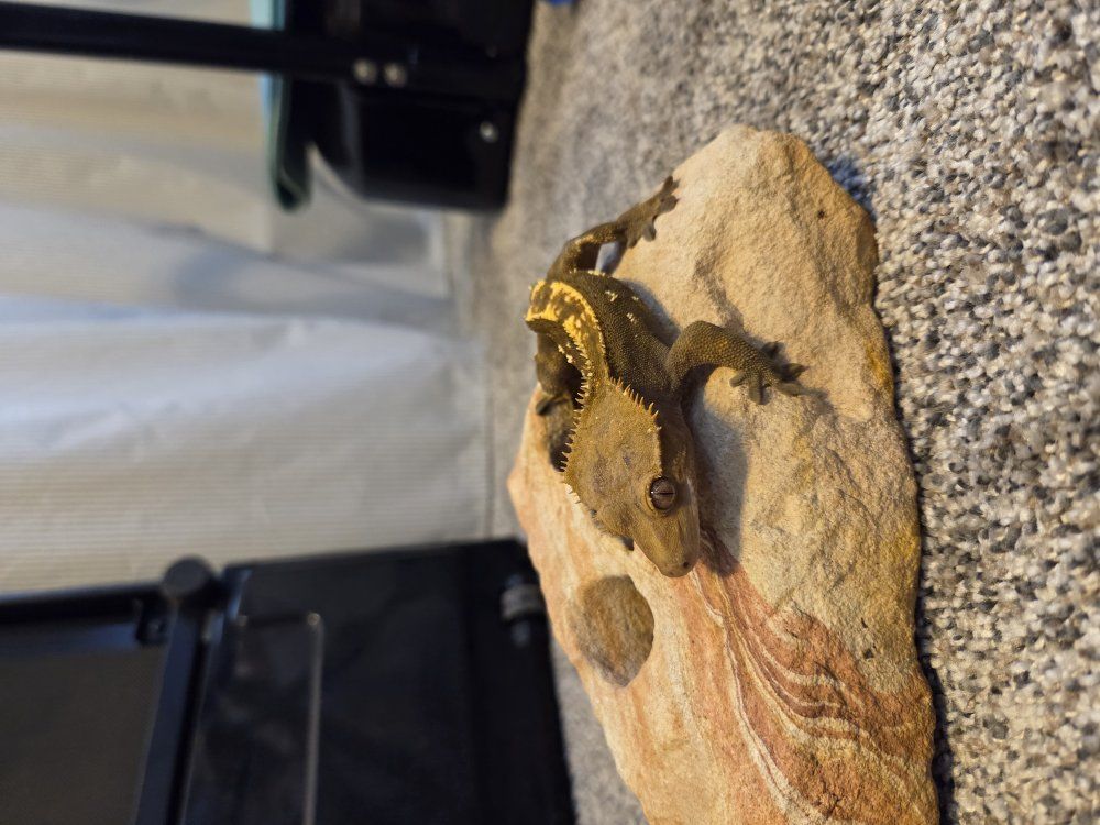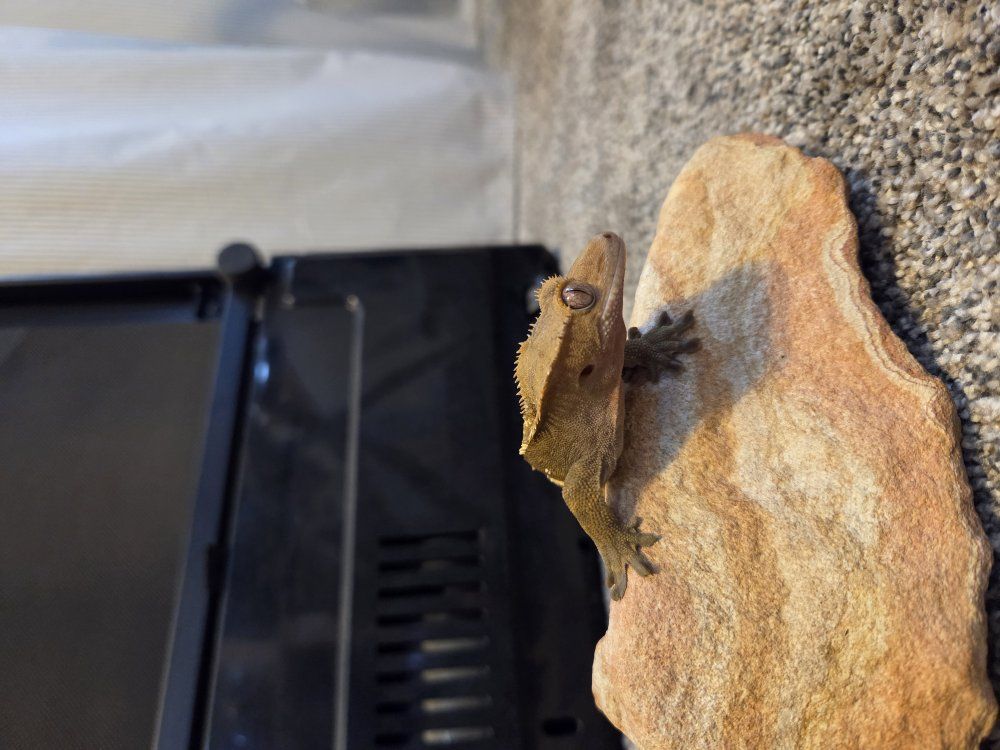 I have one woopsie baby that I need a good home for there is one male list price is just for the baby and if you want the temporary enclosure it will be an extra $30 they reliably eat both powdered diet and crickets he has not been handled much due to me having three creasties already and a multitude of other animals