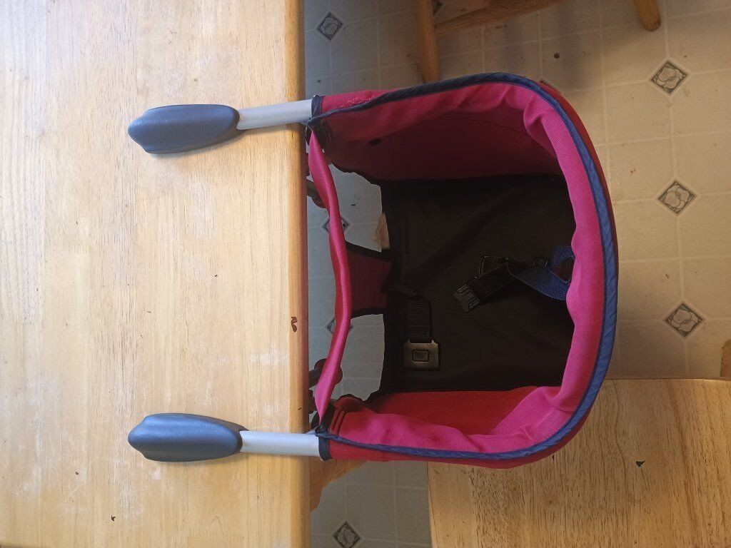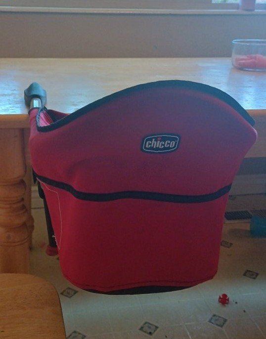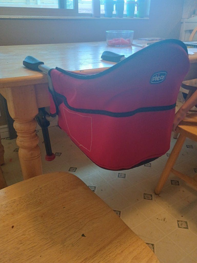 Attachable high chair for toddlers or babies. This high chair attaches to the table. This was great for us because we didn't have room around the table for a full high chair. The fabric is removable for easy washing/cleaning. Folds for easy storage. It adjusts to fit a variety of different table thicknesses and it's easy to remove.