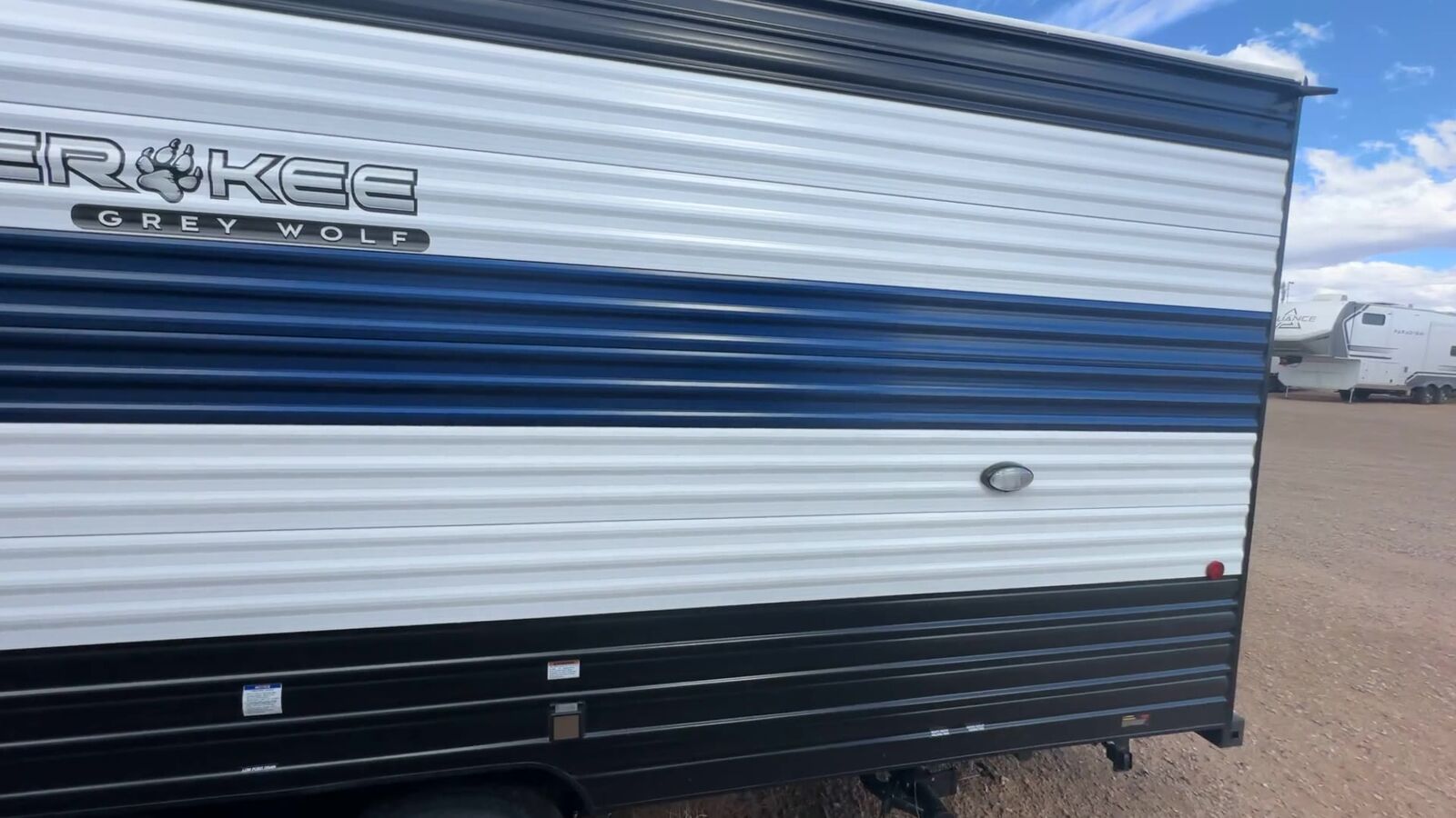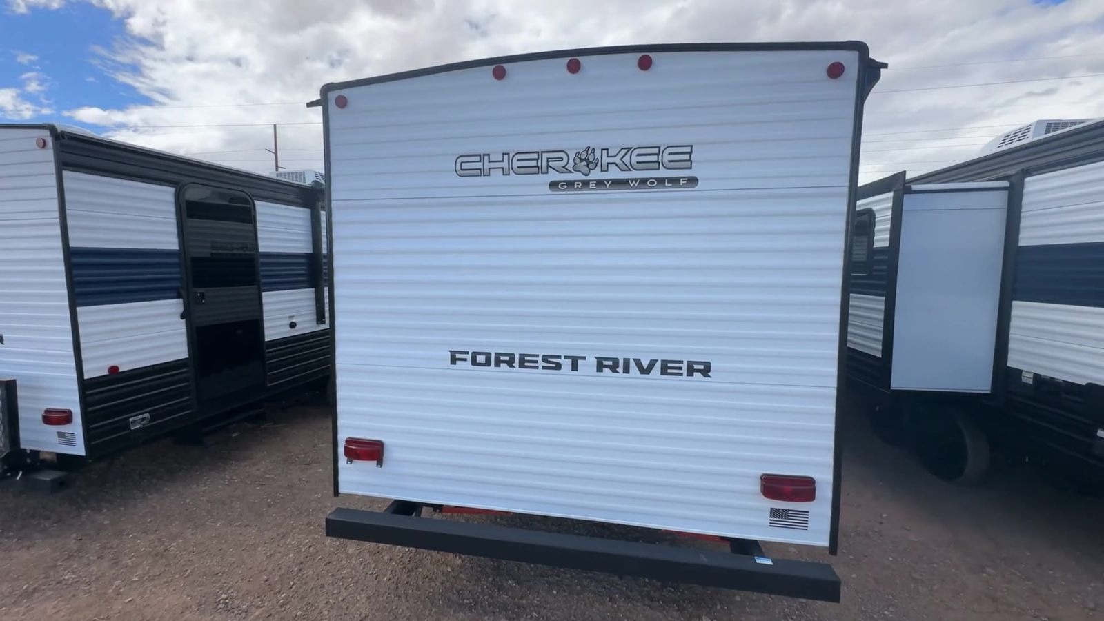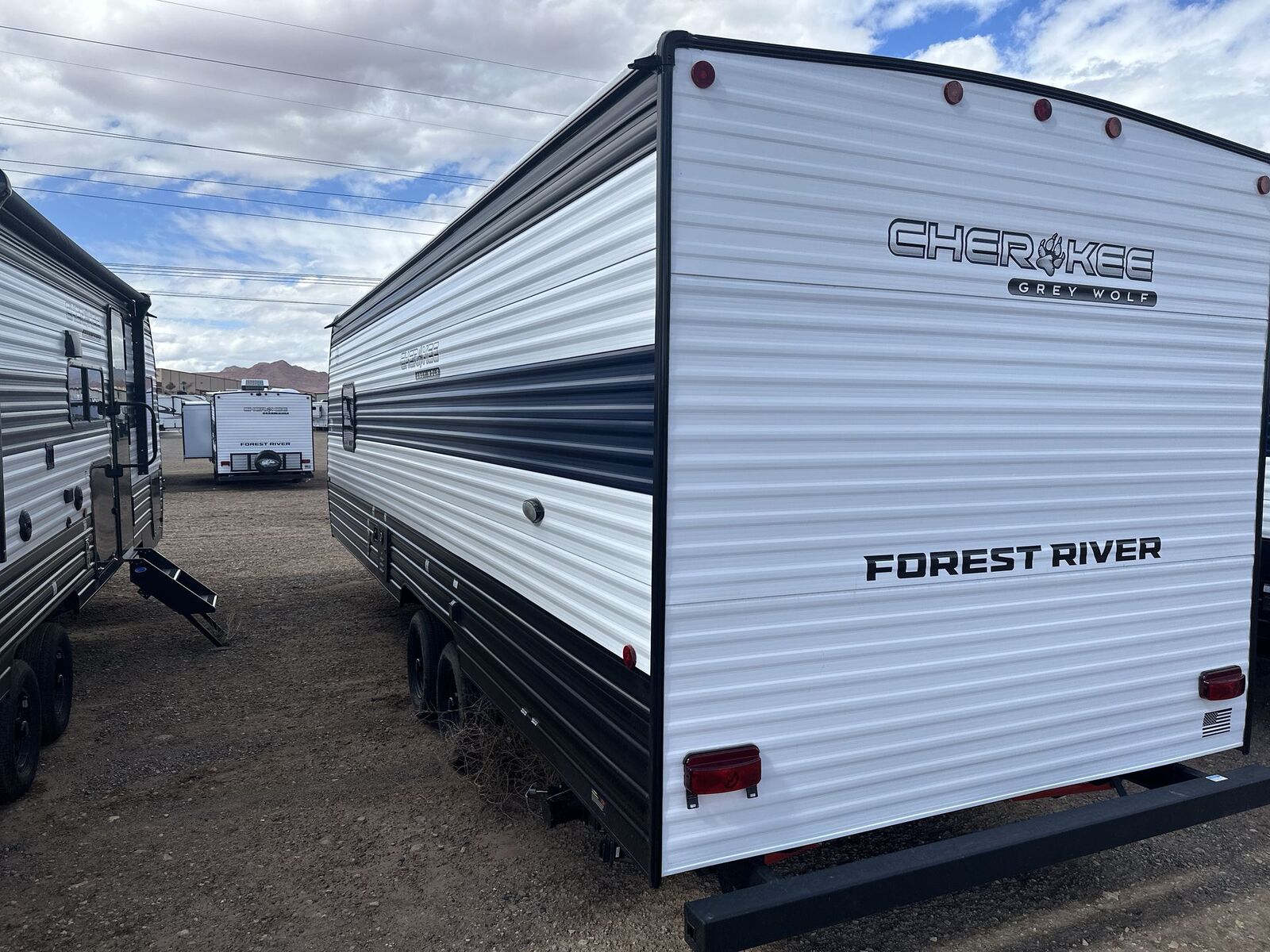 Forest River Cherokee Grey Wolf travel trailer 26LP highlights: Queen Bed Booth Dinette Tub/Shower Storage Shelves The double-size bunks in this model will allow you to camp with more friends and family! With the additional queen bed up front, plus the sofa and booth dinette, you can sleep eight! A full kitchen lets you make meals each day, and the full bath includes a tub/shower so you can clean up after hiking. This unit also includes USB ports to keep your electronics charged, and outside storage for your camp gear! The Cherokee Grey Wolf by Forest River feature distinctive features, at-home comforts, and durable construction materials so you can enjoy your RV for years to come, plus they are outstandingly affordable! You can choose between travel trailers, toy haulers, and even fish houses, depending on the camping style you prefer. You'll find many convenient amenities both inside and outside, along with comfortable seating and sleeping spaces, and plenty of storage for your personal belongings and camp gear!