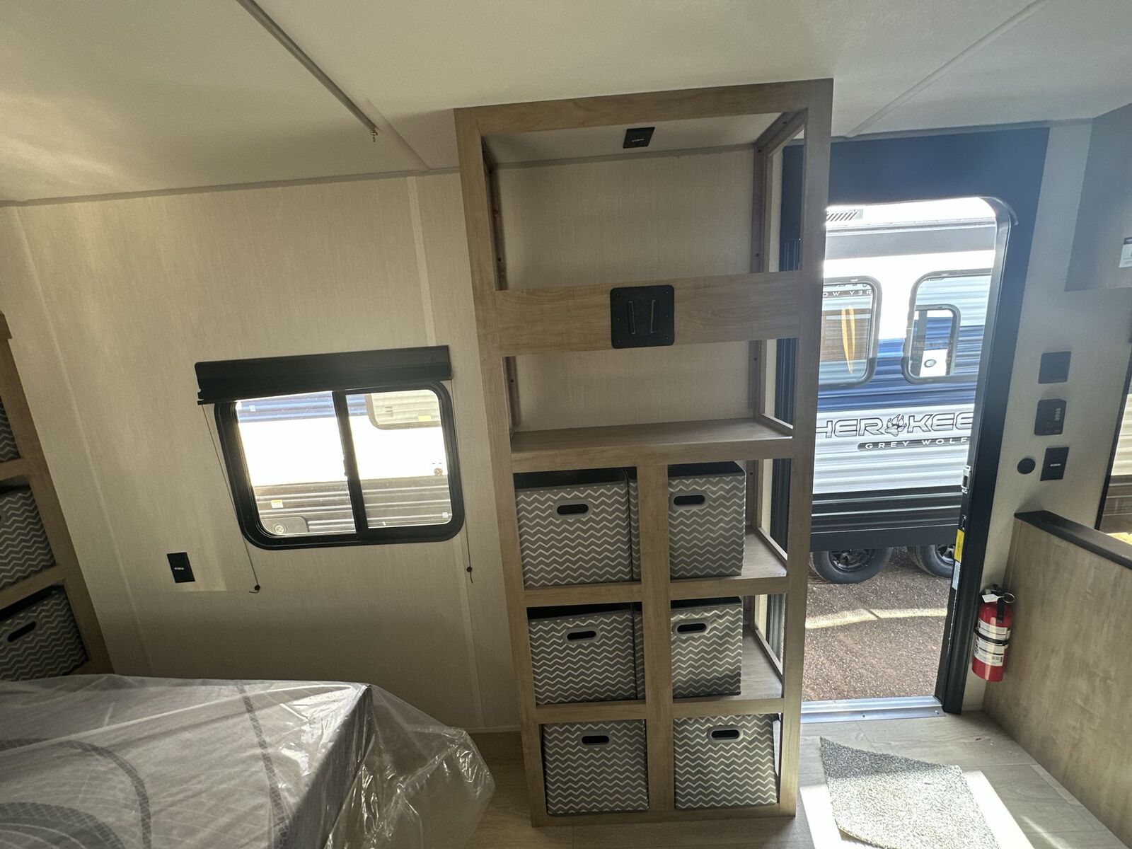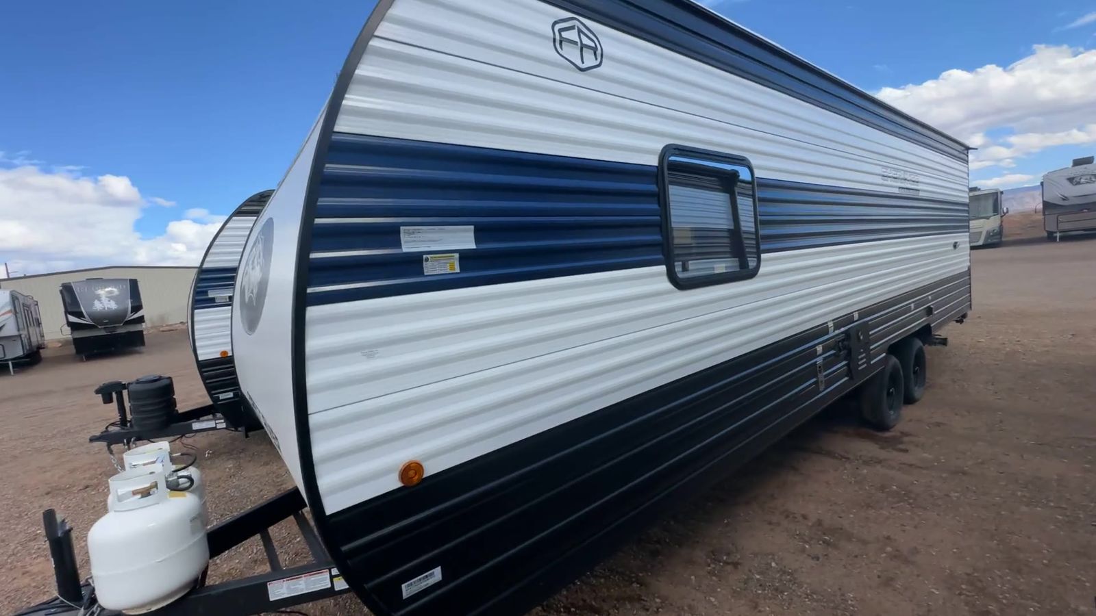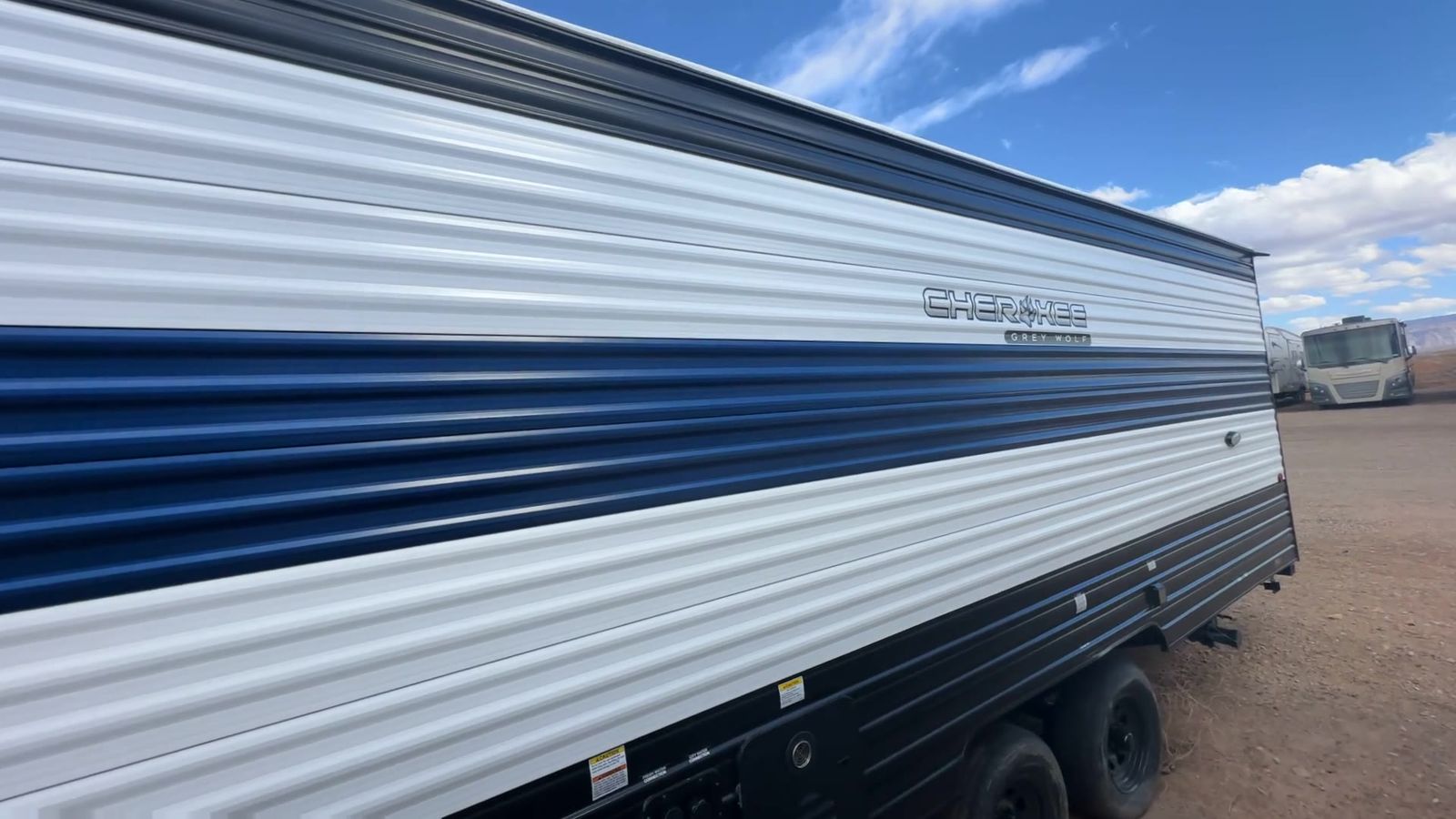 Forest River Cherokee Grey Wolf travel trailer 26LP highlights: Queen Bed Booth Dinette Tub/Shower Storage Shelves The double-size bunks in this model will allow you to camp with more friends and family! With the additional queen bed up front, plus the sofa and booth dinette, you can sleep eight! A full kitchen lets you make meals each day, and the full bath includes a tub/shower so you can clean up after hiking. This unit also includes USB ports to keep your electronics charged, and outside storage for your camp gear! The Cherokee Grey Wolf by Forest River feature distinctive features, at-home comforts, and durable construction materials so you can enjoy your RV for years to come, plus they are outstandingly affordable! You can choose between travel trailers, toy haulers, and even fish houses, depending on the camping style you prefer. You'll find many convenient amenities both inside and outside, along with comfortable seating and sleeping spaces, and plenty of storage for your personal belongings and camp gear!