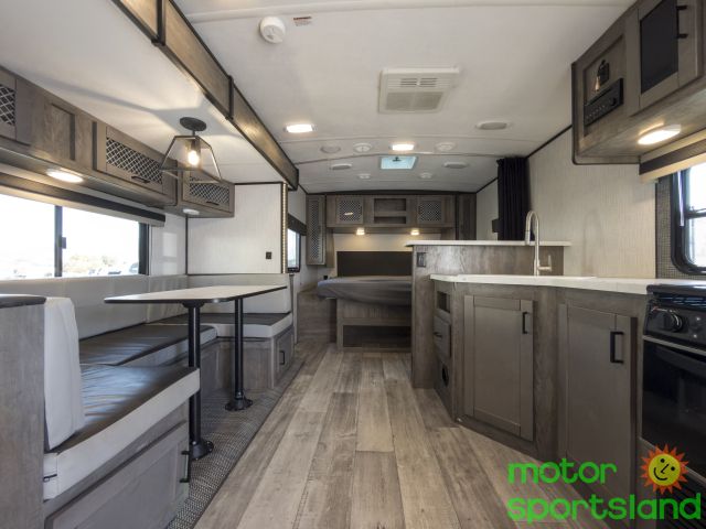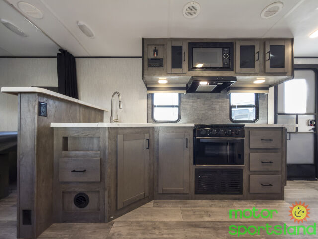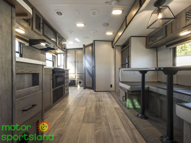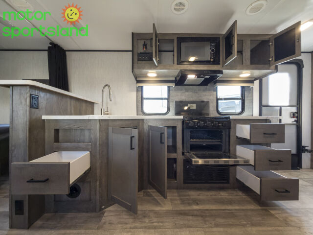 Family-Friendly Design: Spacious rear bathroom and a cozy queen bed, plus convertible dinette and sofa for extra sleeping space—perfect for the whole crew! Luxury Features: Enjoy premium finishes, LED lighting, and a fully equipped kitchen with stainless steel appliances for effortless meal prep. Ultimate Comfort: Stay cozy year-round with dual-ducted AC, heated underbelly, and ample storage for all your gear. Outdoor Ready: Power awning and exterior speakers make outdoor living a breeze, ideal for family bonding under the stars.
