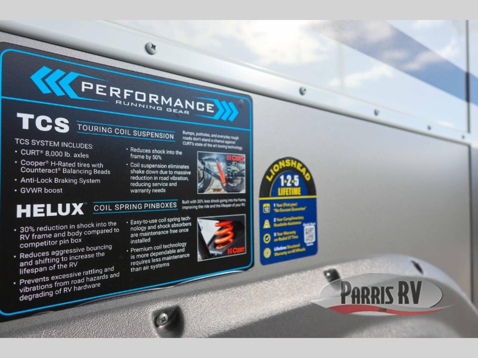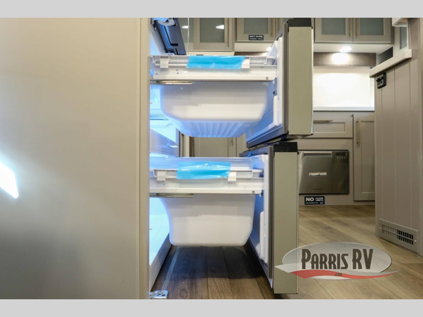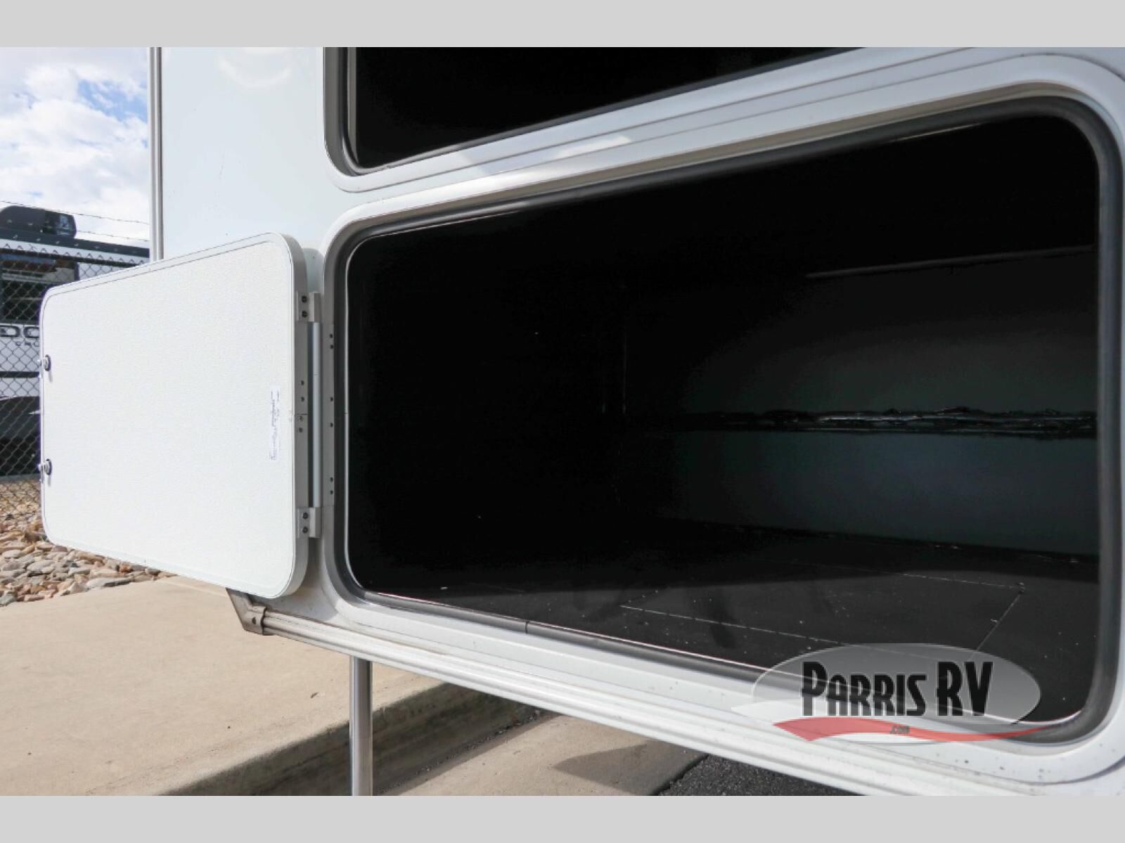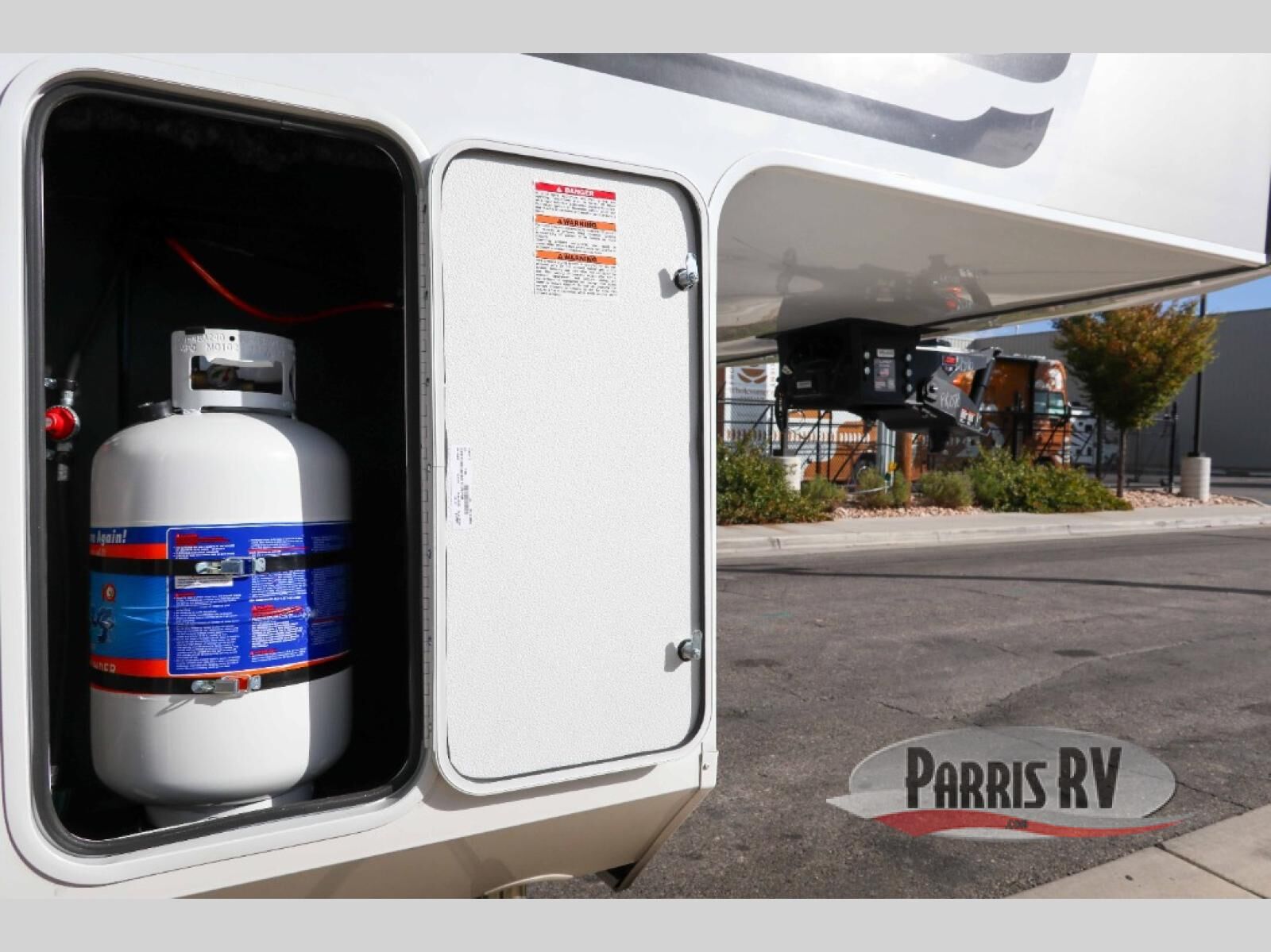 The Paradigm fifth wheels by Alliance RV are functional, high-quality, and luxurious for an unforgettable camping experience. There are three A/C units and a 40K BTU furnace to keep you comfortable year around, and you'll appreciate additional convenient amenities, like the all-in-one enclosed/heated utility center and the color coded and numbered wiring. A Helux Series coil spring pin box comes standard for hassle-free towing, along with Curt 8,000 lb. axles. You'll love the kitchen with its LG solid surface countertops and Lusso range, plus there is LED motion lighting in the pantry and a Maxx fan with a rain sensor to keep everything fresh when making dinner. Each model also includes an HD Smart TV in the living room and bedroom. And of course there are a variety of options you can choose from to further customize your fifth wheel; dual pane windows, Super Solar Plus, slide out awning toppers, and generator prep or a generator to name a few!