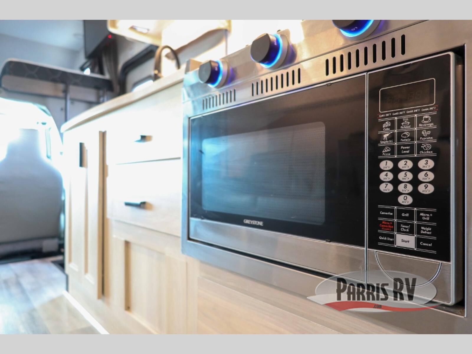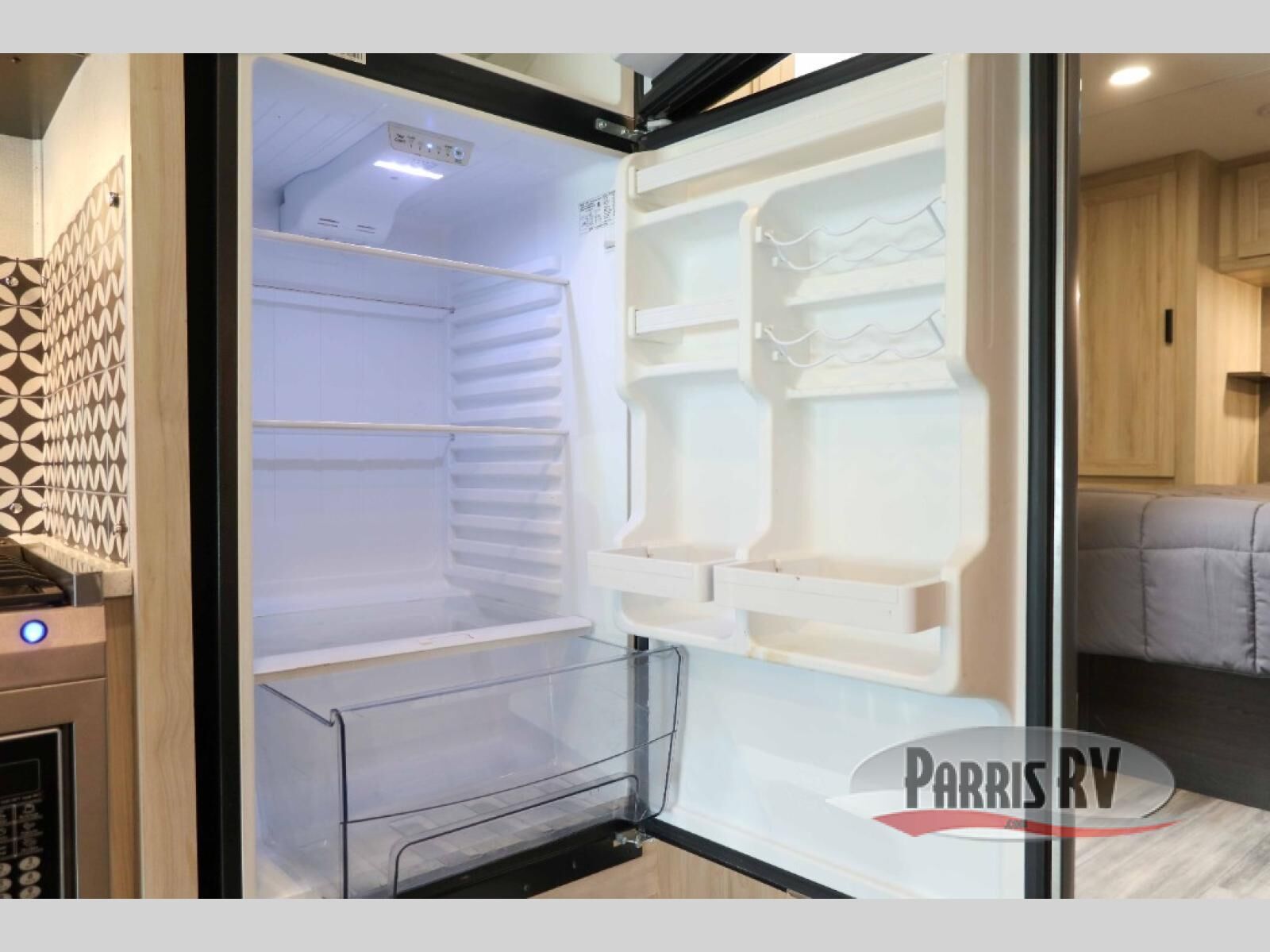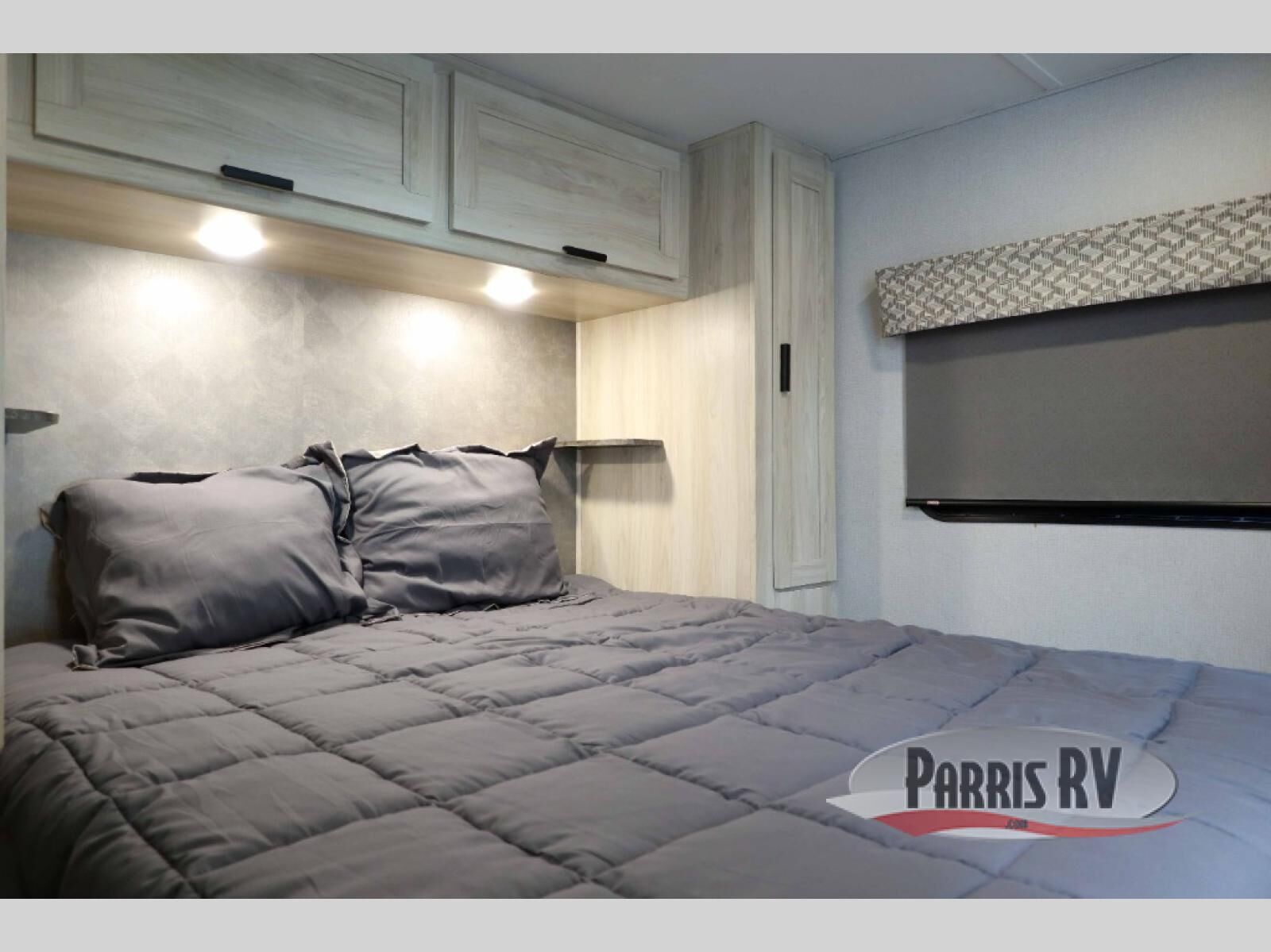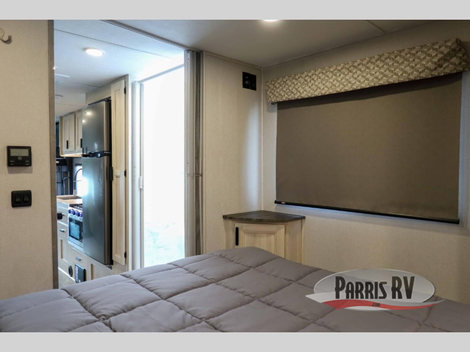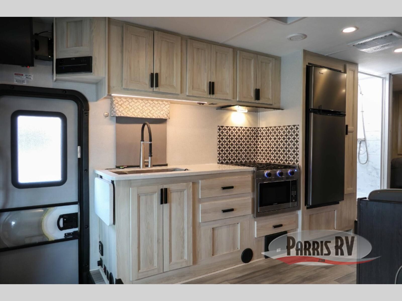 You and your favorite person will love this coach for many reasons including having your own private bedroom with a split bathroom, a walk-around queen bed, plus your own wardrobe. The split bathroom is pretty handy since one person can get ready in the private toilet and sink room while another is taking a shower. The kitchen offers a 10.7 cu. ft. 12V refrigerator, a convection microwave, a recessed three-burner range, soft touch self-closing drawer guides and a cordless 12V charging plate. You will have overhead cabinets and a pantry for storage. The slide out sofa and booth dinette offer a great place to relax and dine plus gives you more floor space. And the queen bunk over the cab will be a popular sleeping space for overnight guests.